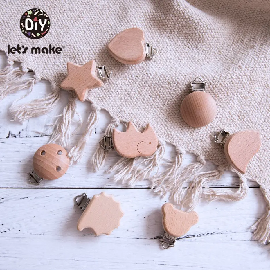 Детский зажим для соски Let's Make, натуральный деревянный зажим дл...
