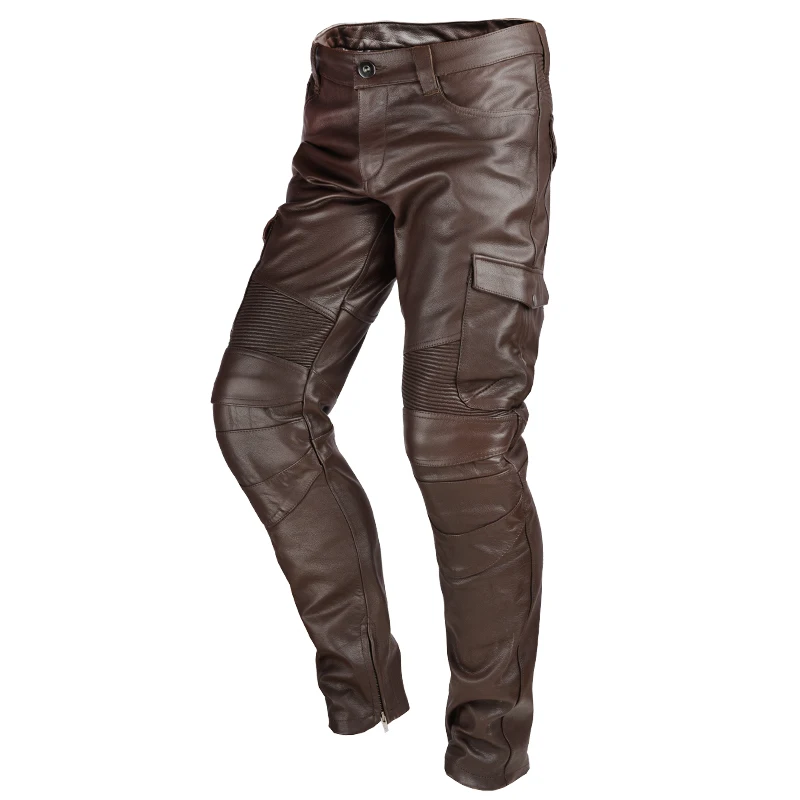 Very good fitting pants made of the perfect leather. Fits without a gap in my back. Room enough in the crotch. Good quality YKK zips. That is why I just bought a second pair. The size (4xl) I took a bit bigger, because the real size could be a few cms smaller, and it was...... It will stretch in time, but I like my pants a bit wider. Movements are easier that way. There is room for extra knee protectors. I ride a 3 wheel recumbent bicycle.