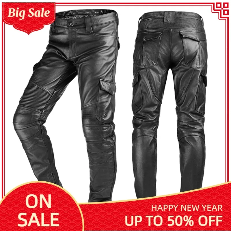 Брюки мужские в байкерском стиле, черные брюки из натуральной кожи в американском стиле, байкерские штаны из плотной воловьей кожи, 2021 4XL, размера плюс