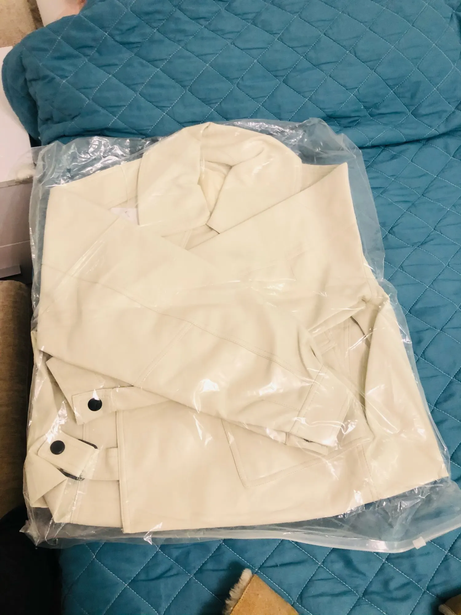 Очень хорошая курточка . очень мягкая , нет блеска, нет запаха . Очень оверсайз . на медиум взяла S и смотрится все равно оверсайз . Цвет молочный . подкладка очень хорошая .