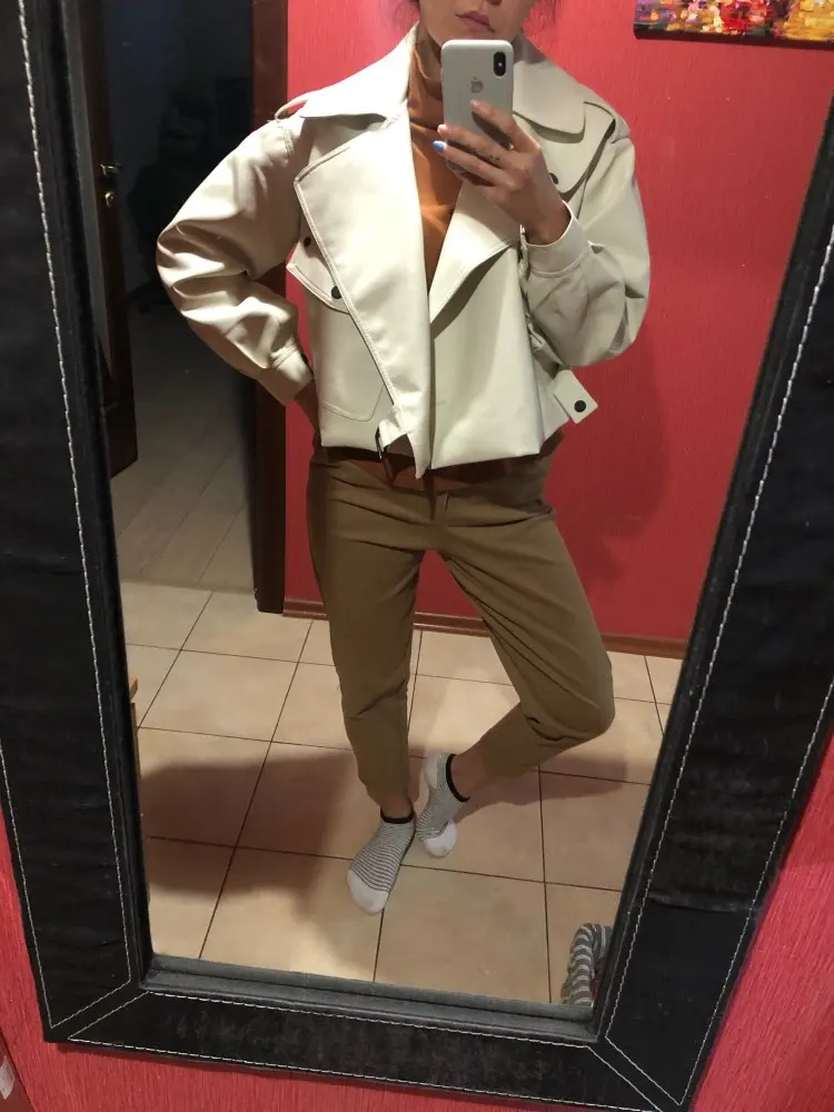 Полный восторг! Instagram - @nevskyh ♥️ Обошлась мне куртка в 26$. Она выглядит в разы дороже! Заказывайте! Куртка свободная, я брала размер С, мои параметры 84-66-88, спокойно одеваю под низ толстовку. Достаточно тёплая, отличный качественный подклад. Не белая, скорее цвета кости. Сама куртка качественно сделана, из кожзама, нитки в цвет куртки, не торчали, швы ровные. Застёгивается на кнопки. Внутри для удобства есть пуговичка. я возьму чуть позже на весну ещё в красном цвете. Куртка отличная, и продавец замечательный. Однозначно рекомендую к покупке♥️ 709,80 грн. -42% | Женская байкерская куртка из ПУ кожи, с отложным воротником https://a.aliexpress.com/_mqnYfyD