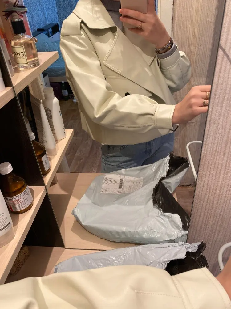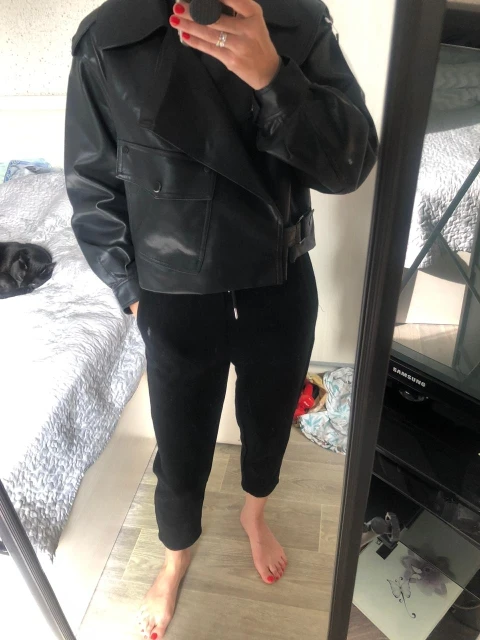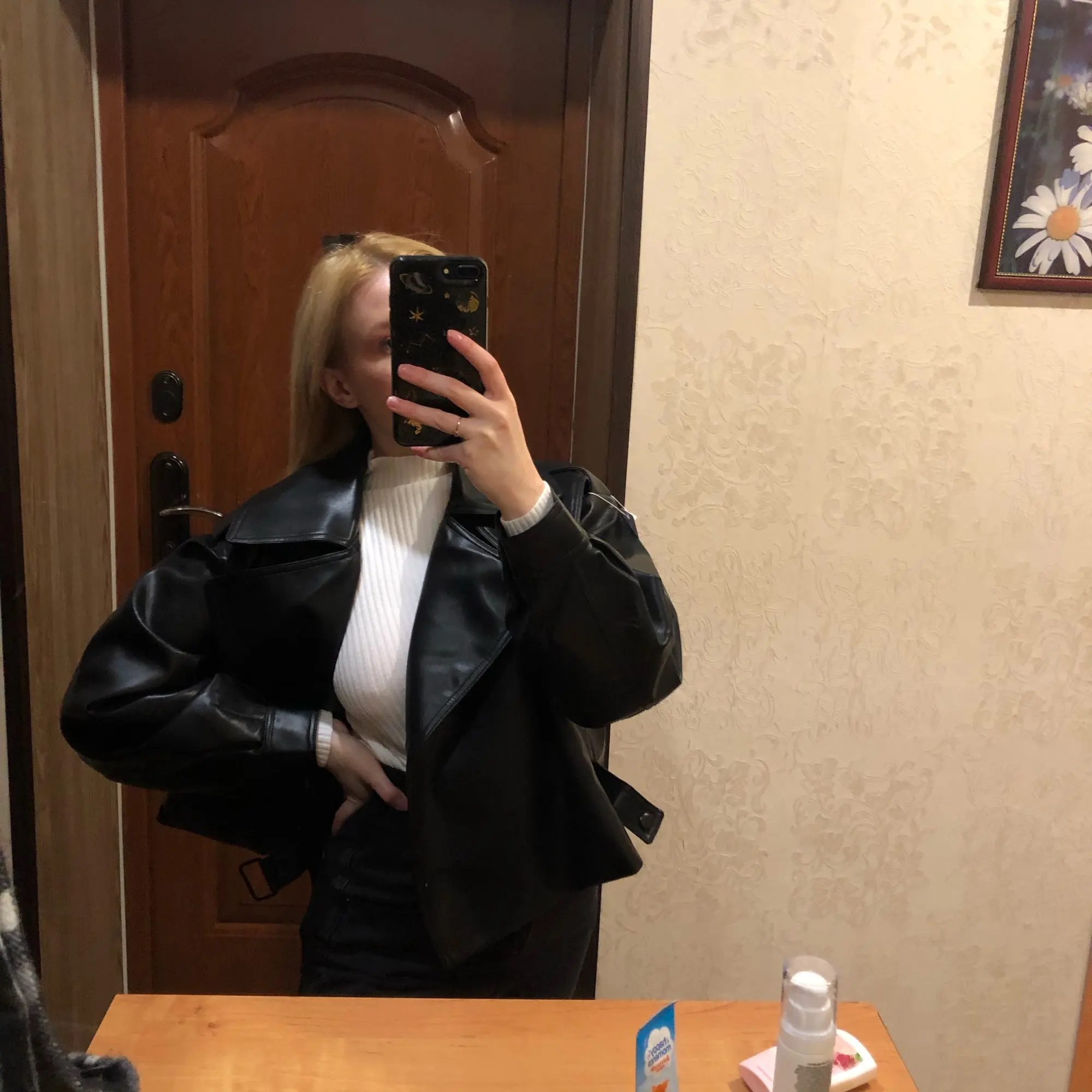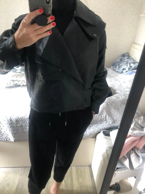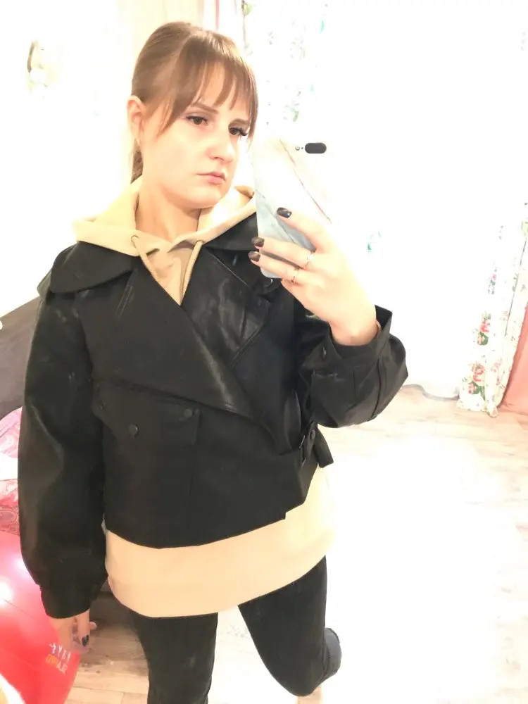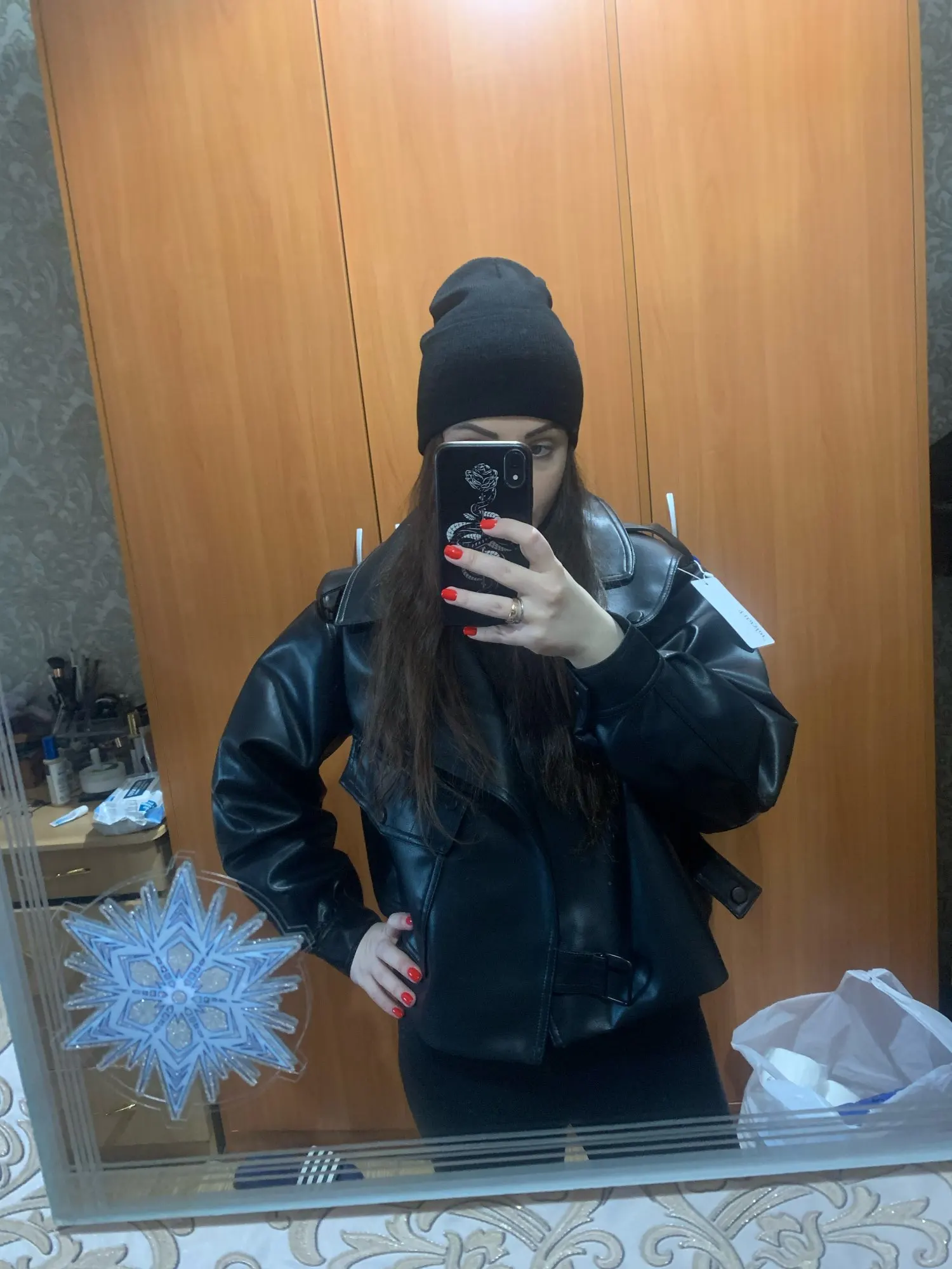 Начну с плохого-закончу хорошим. Читайте до конца. Когда куртка приехала месяц назад, я была в восторге. Но сейчас уже через месяц у меня отходит карман, при том, что я практически ничего туда не складываю. Материал, как оказалось, достаточно сильно собирает грязь. Приходится оттирать специальными салфетками для ухода за экокожей. Это не критично, но все же. В целом от натуральной кожи отличить достаточно трудно. Форма-конечно топовая. Красивая, все спрашивают где купила/заказала. На свои параметры 89/56/90 заказала S и села свободно как надо. В случае с этой курткой заказывать на размер больше не надо. Утонете. Идёт оверсайз. Рукава идеально. Даже чуть ниже кисти. По цене так же хорошая стоимость за такой товар. Не скажу, что сильно рекомендую, но если хочется чего-то классного, привлекающего внимание и недорогого-это ваш вариант.