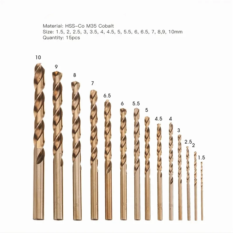 15 шт. 1,5-10 мм M35 hss-co Кобальт сверла по металлу весь первый металлические электрические инструменты для Нержавеющаясталь сверления отверстий