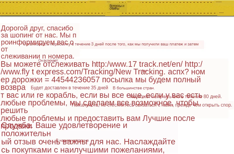 заказ не отправили, хотя была доставка из России и еще до праздников. на сообщения продавец не отвечает