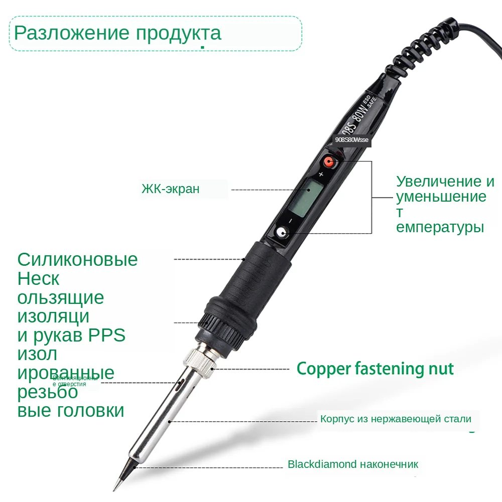 Паяльник с ЖК-дисплеем и регулировкой температуры, 110 В, 220 В, 80 Вт