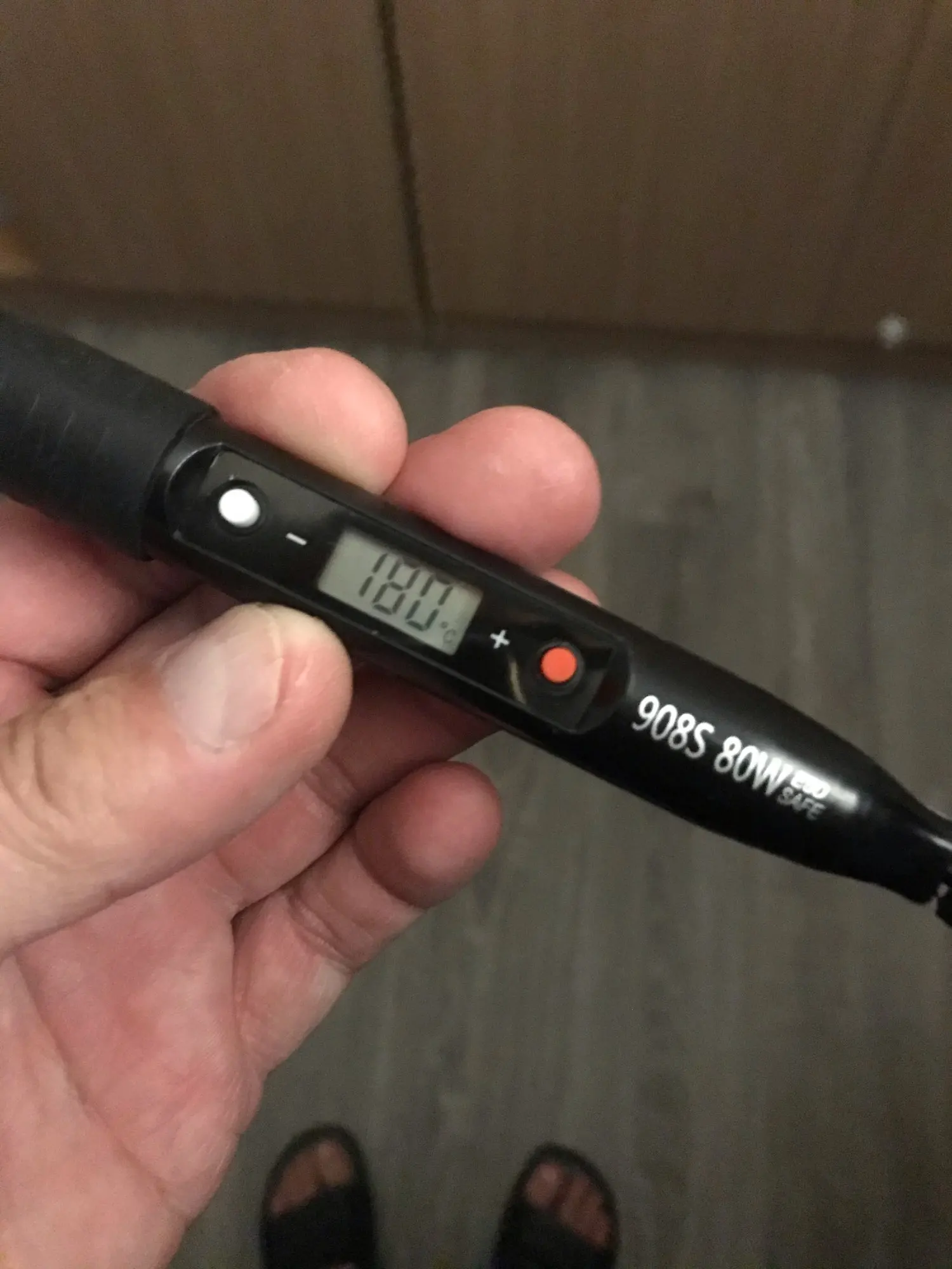 12.11.20 - 25.11.20 уже в Москве на почте. Проверил паяльник в работе 15.15.20. По умолчанию 350 градусов, для печатной платы поставил 360. Паяльник удобный, сохраняет температурные настройки при повторном включении. Брал за 1098р. со скидкой, доставка из Китая. Рекомендую брать именно 908S 80W. Подставка, футляр на молнии, пинцет и отсос для припоя очень удобны, зачистка для проводов ерунда.