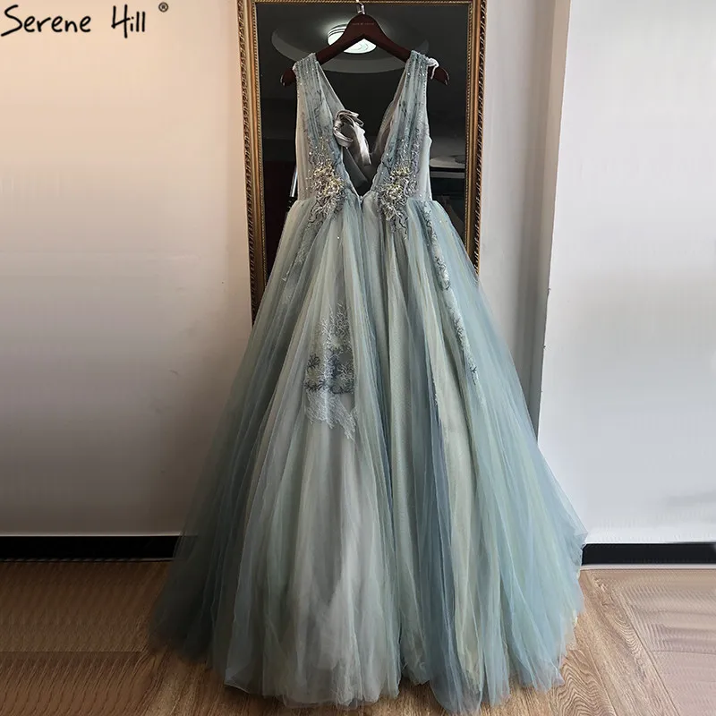 Мятный v-образный вырез, Сексуальные вечерние платья трапециевидной формы, дизайн 2021, без рукавов, ручная работа, цветы, расшитые блестками вечерние платья, настоящая фотография LA70155