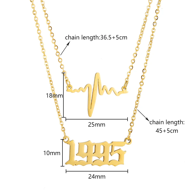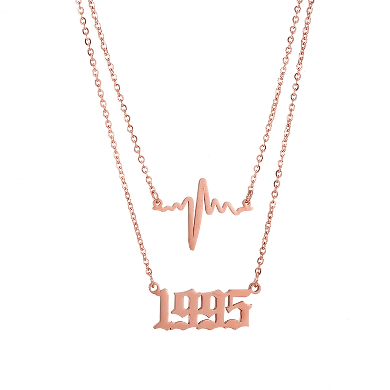 Ожерелье из нержавеющей стали подвеска в форме сердца, многослойное ожерелье с цифрами, золотая цепочка 1980-2019, подарки на день рождения