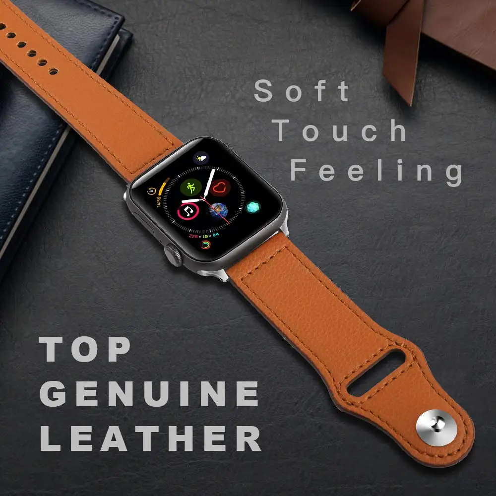 Ремешок из натуральной кожи для Apple watch series 5, 4, 3, 2 цвета, мягкий Блестящий спортивный ремешок для iWatch 38 мм, 42 мм, 40 мм, 44 мм, розовый