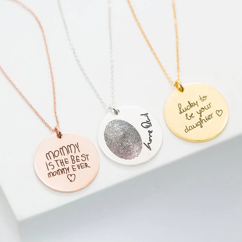 Ожерелье для детей с персональным рисунком и рукописным письмом, памятная подвеска, ювелирный диск 22 мм
