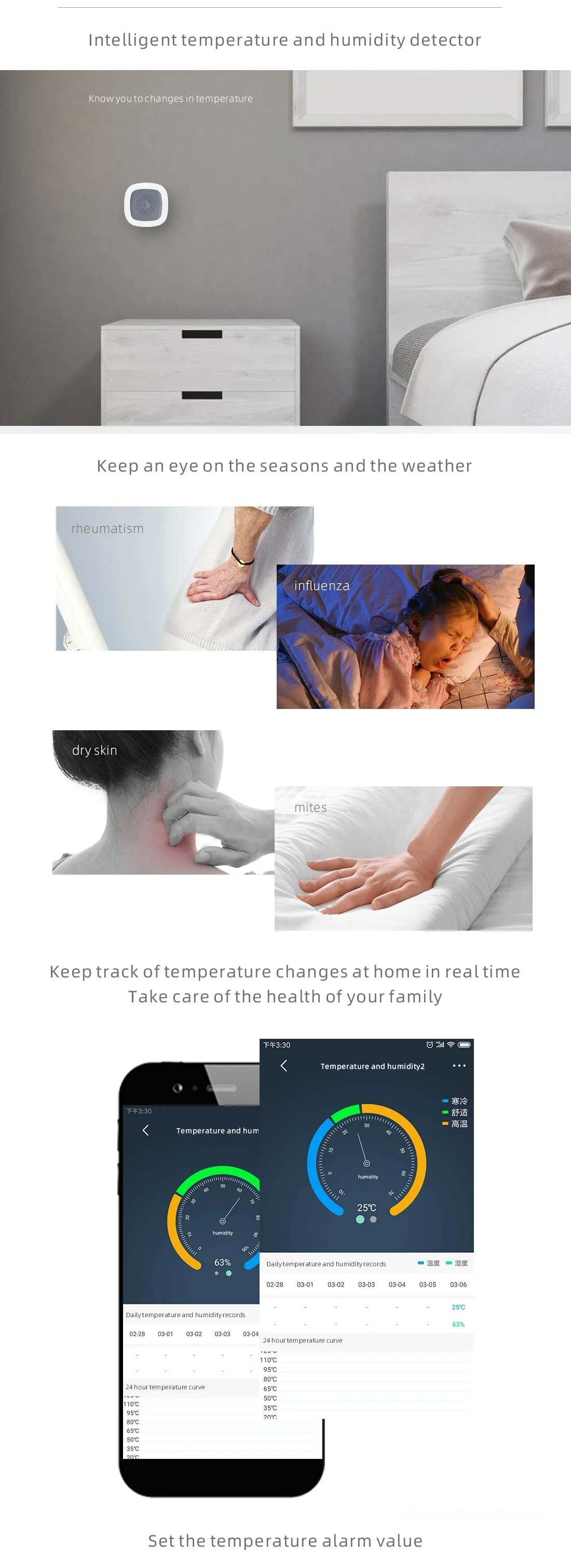 Датчик температуры и влажности Heiman Zigbee3.0, детектор в режиме реального времени для телефонов, отслеживание работы с шлюзом SmartThing