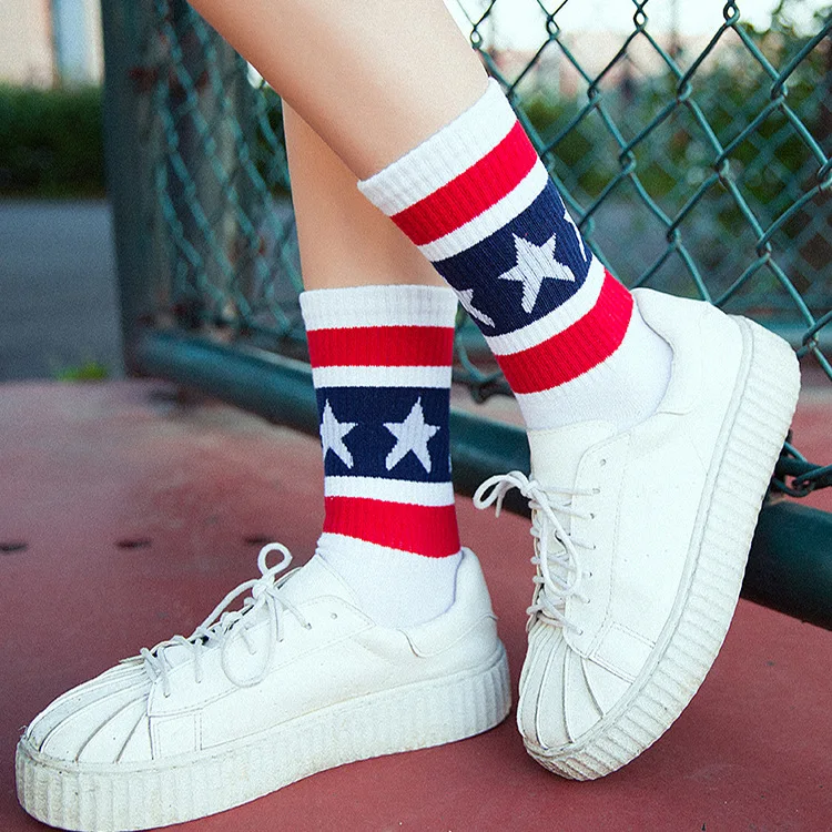 Для женщин носки поп Harajuku носки с надписями длинные хлопковые носки в стиле хип-хоп Уличная Западная пара радуги лунный тренд в звездочку