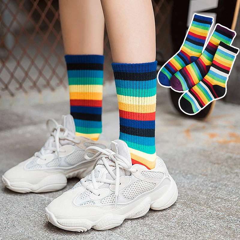 Новинка весны 2019 Харадзюку крутые шорты для скейтборда радужные носки художественные модные хлопковые хипстерские цветные носки с героями мультфильмов для женщин