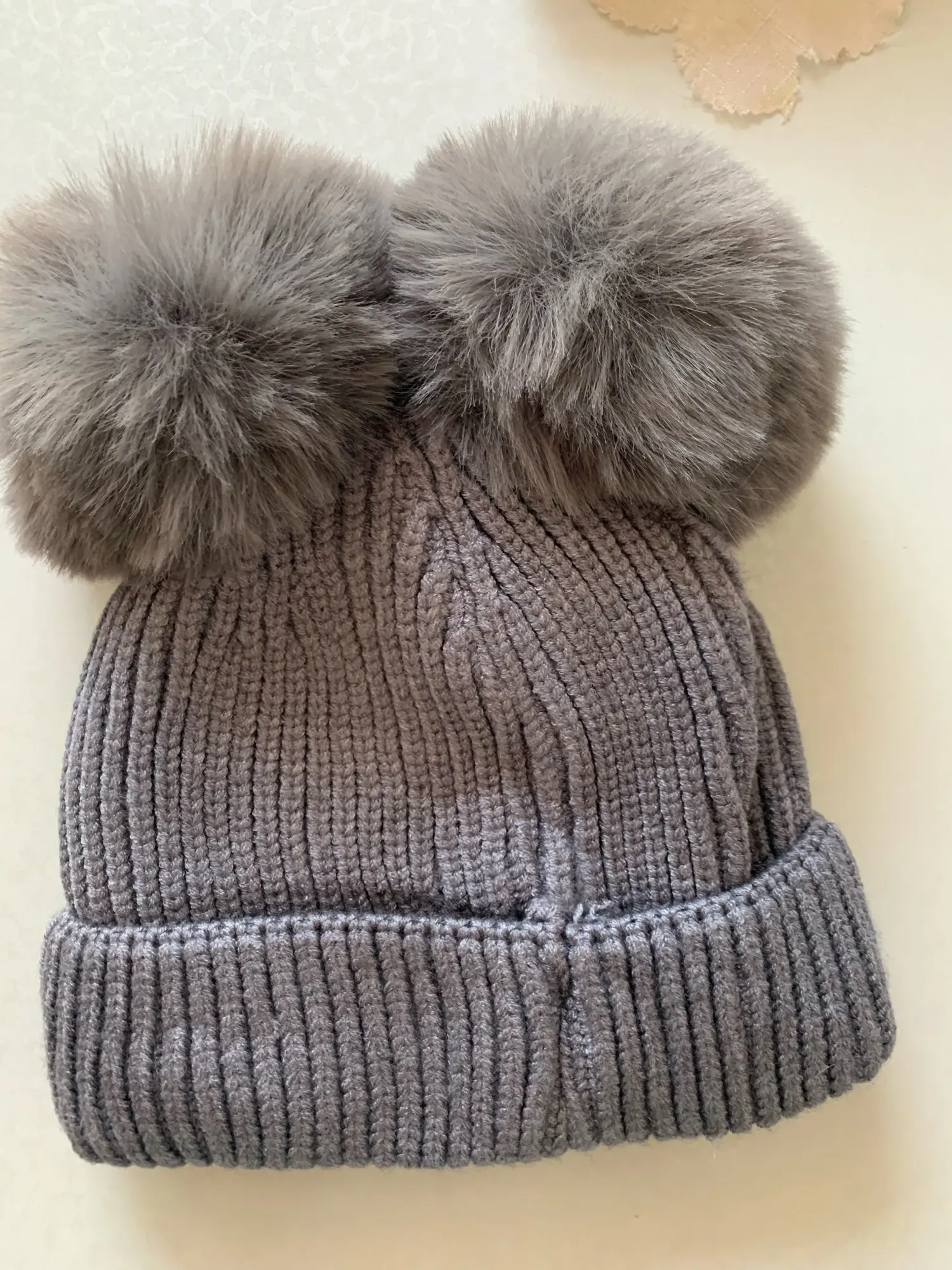 Детская зимняя шапка с двойным помпоном, вязаная шапка для маленьких девочек, теплая плотная детская Младенческая шапочка, шапка для девочек, шляпа-шлем Enfant