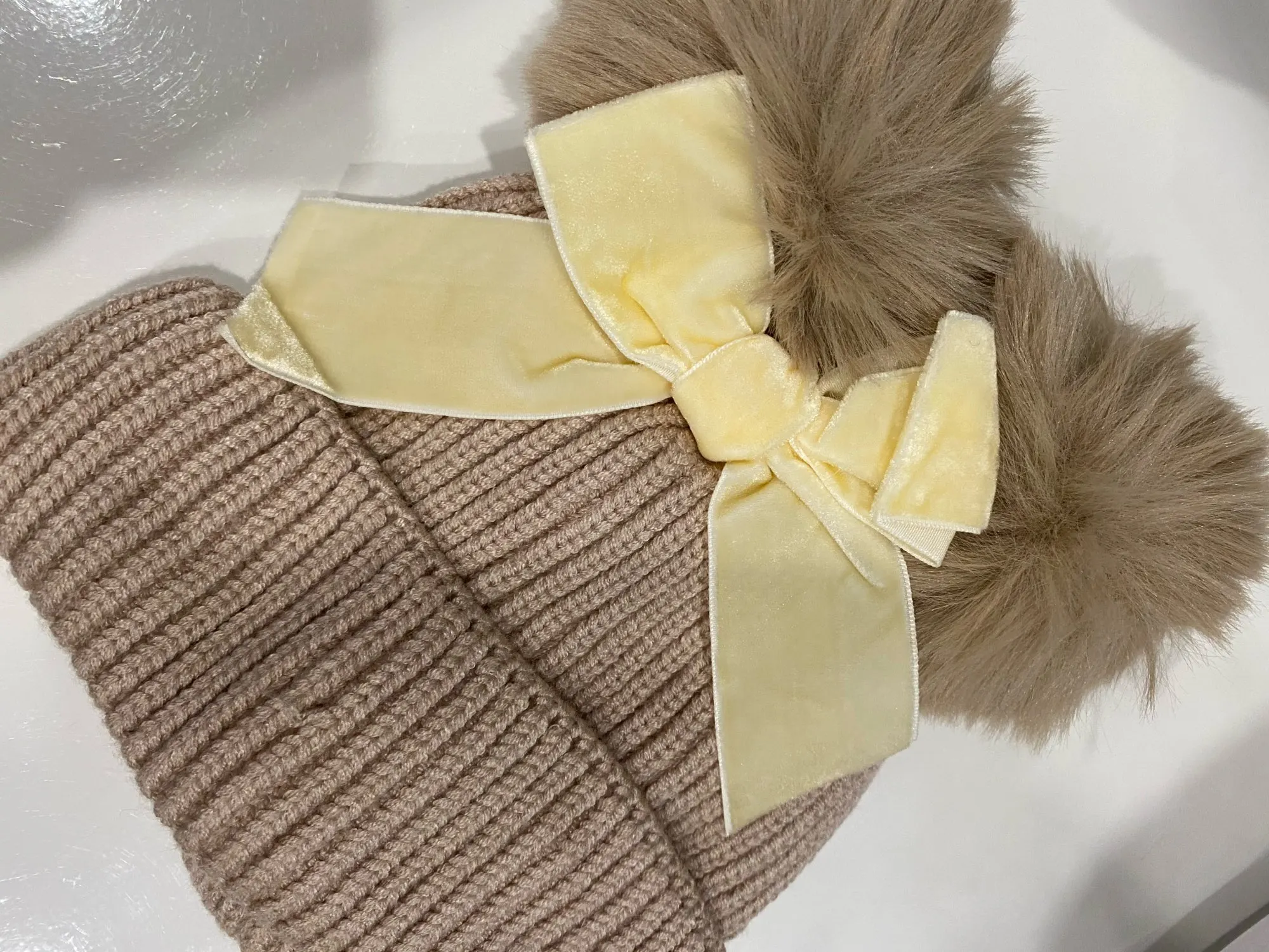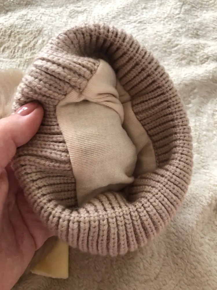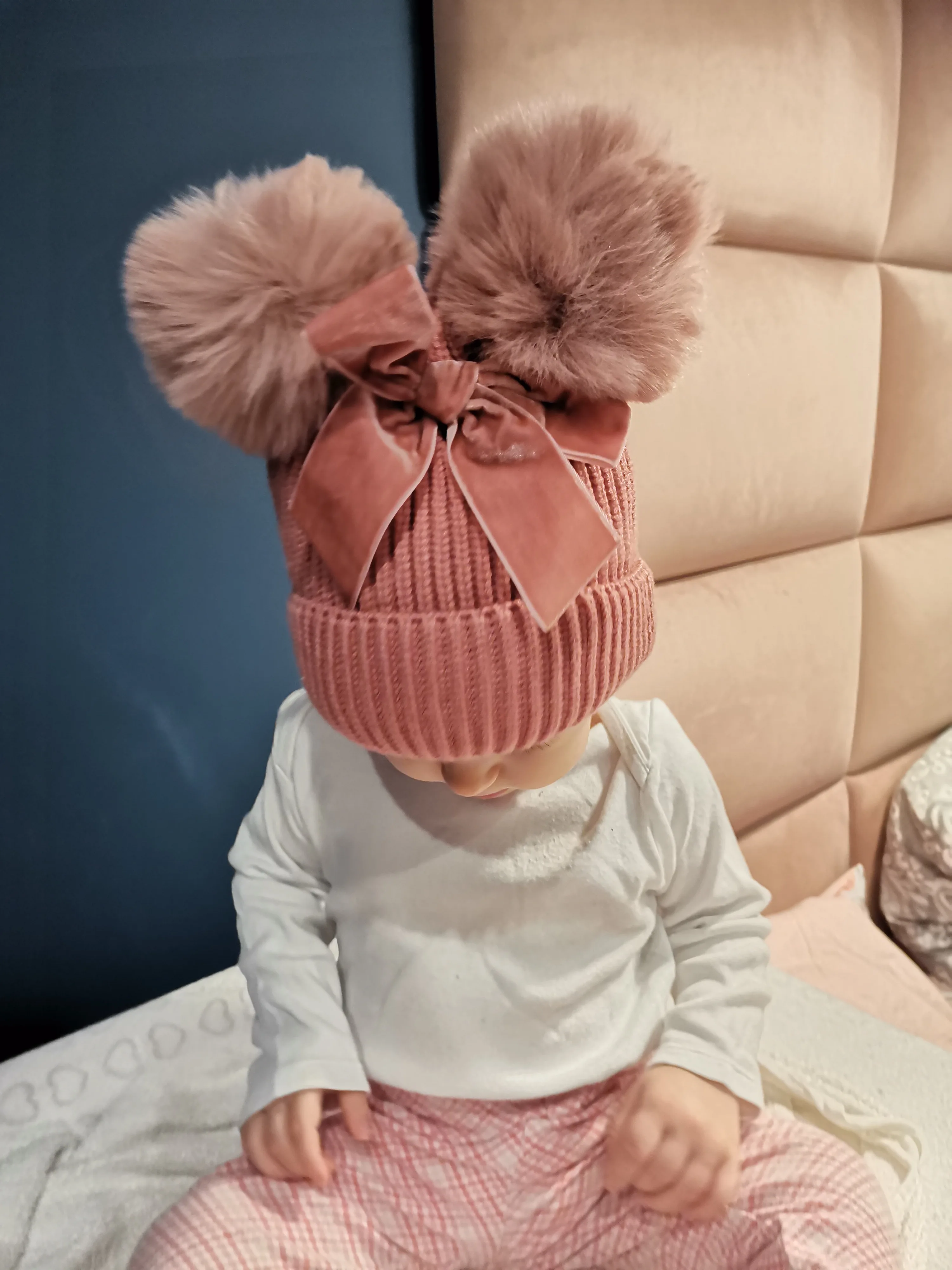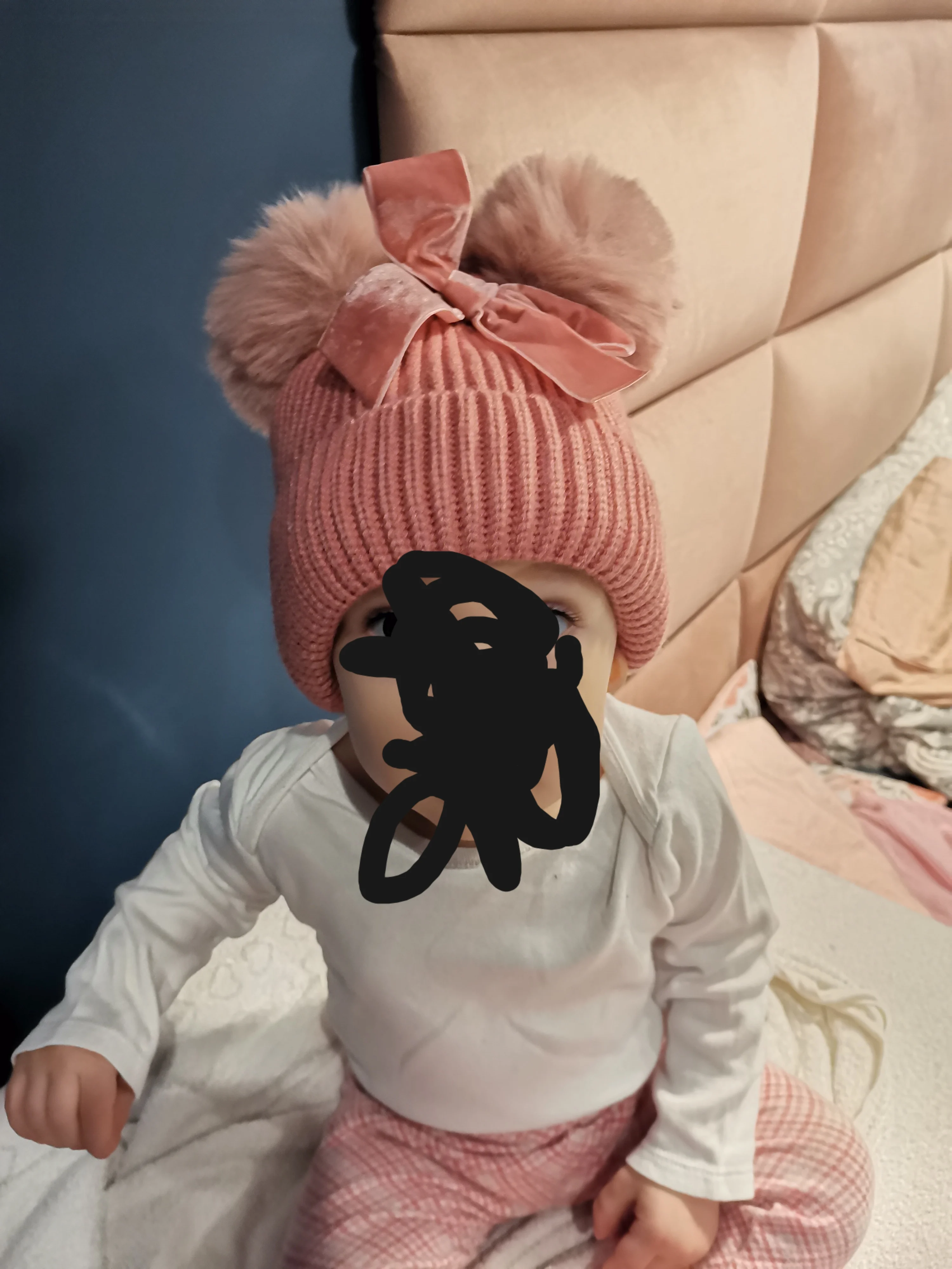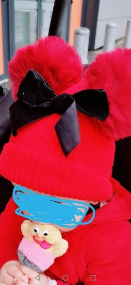 Шапочка очень красивая, как на картинке. У дочки окружность головы 48см, полтора года, шапочка впритык. Помпоны и бантик приклеена, советую перед стиркой бантик закрепить нитками, так как наш бант после стирки развалился и я очень долго его восстанавливали.