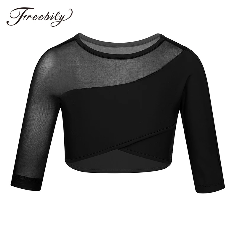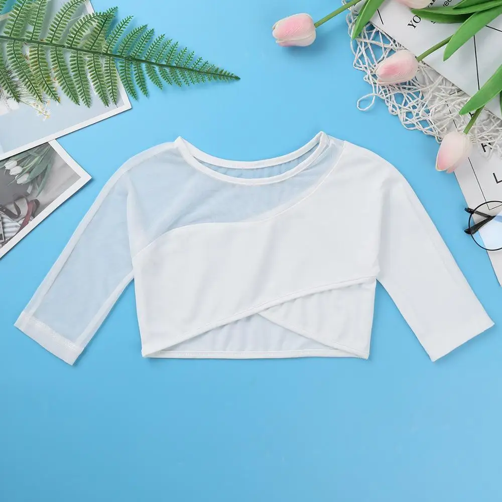 Асимметричный топ с рукавами 34 для девочек, для танцев, для балета, сценического представления, спортивные топы для тренировок, Детская Одежда для танцев