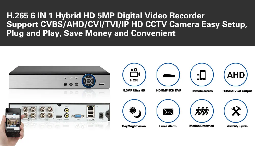 AHD DVR Resolution8CH 5.0MP AHD DVR