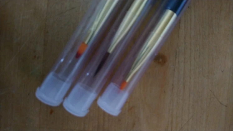 Кисти классные. Посмотрим как в работе. Щетина в заводском клею. Сами кисти в прозрачном тубусе.