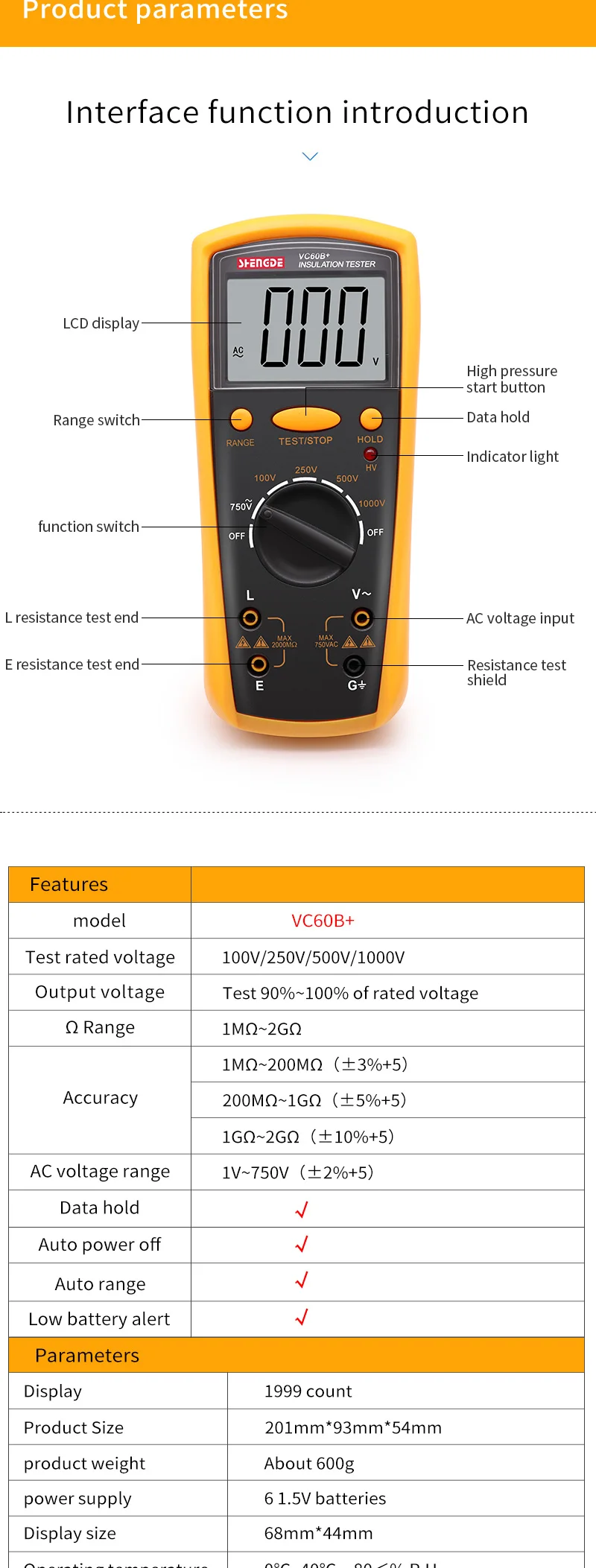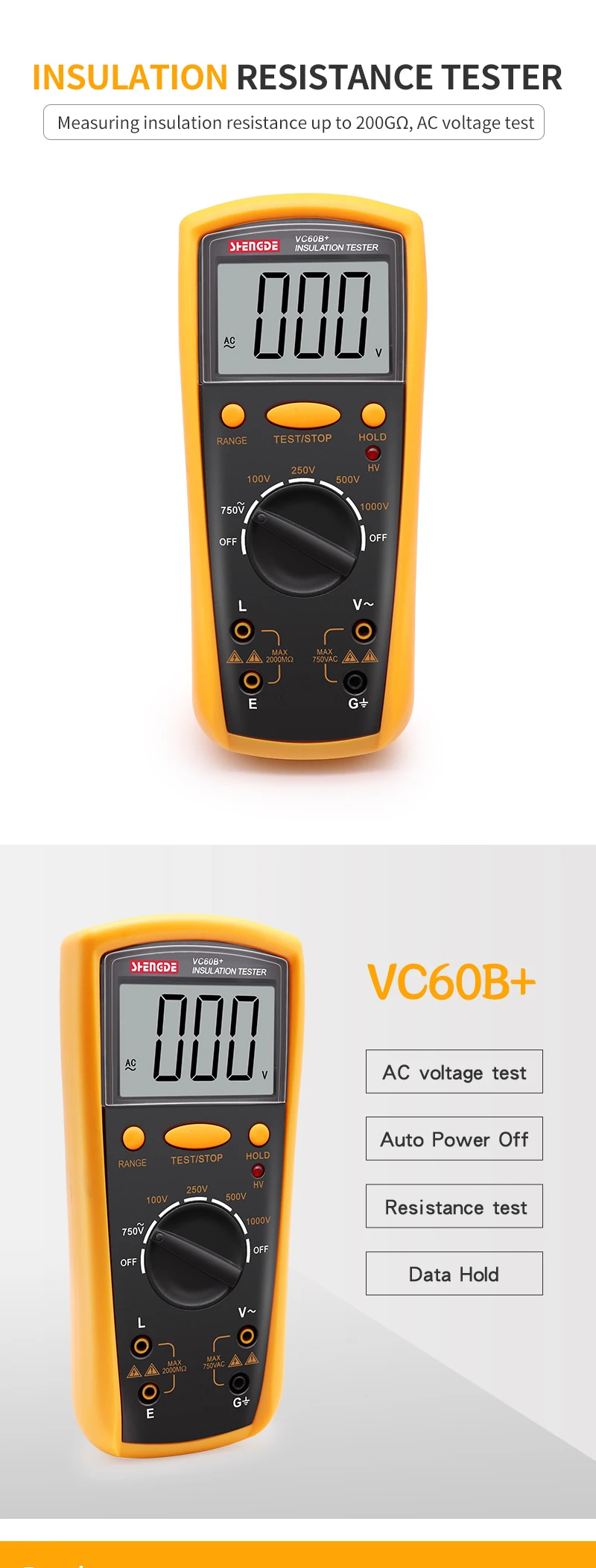 Тестер сопротивления изоляции VC60B + цифровой мегомметр Тестер изоляции Шейкер лучше, чем BM500