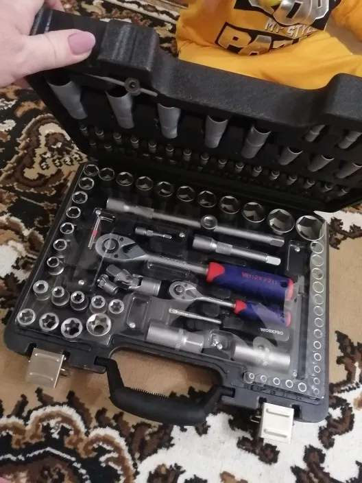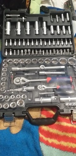 отправка на следующий день. доставка 5 дней до квартиры, несмотря на новогодние праздники. Все целое чемодан не побит, как у других продавцов по отзывам. Инструмент отличный, давно хотел но жаба давила покупать за полную стоимость, личшний свободный купон остался и разорился по отличной цене, дешевле не видел. Метал отличный не сыромятина, без пробы в работе, держа в руках можно понять. Скорее всего трещетки нужно будет смазать, если есть смазка еще не помешает. ключей не хватает но это уже другая ценовая категория . Но просто убило, Нафига производитель вкручивает самарезы в чемодан, убогий вид теперь с этими дырами хотя обратно вкрутил их, хоть как то закрыть дыры. Все понимаю для транспортировки, что бы не повыпадали головки. Но можно было толстый поролон положить. Для дальнейшего использования по-любому нужен будет поролон , т.к. что там сейчас лежит надолго не хватит. Но эти претензии к производителю, а не к продавцу. Продован отличный смело можно брать.