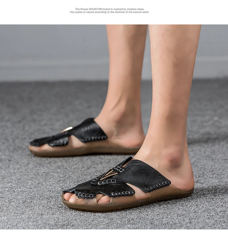 Сандалии мужские летние из дышащей кожи, мягкие кожаные повседневные шлепанцы, удобная Уличная обувь на плоской подошве, пляжные тапочки в римском стиле