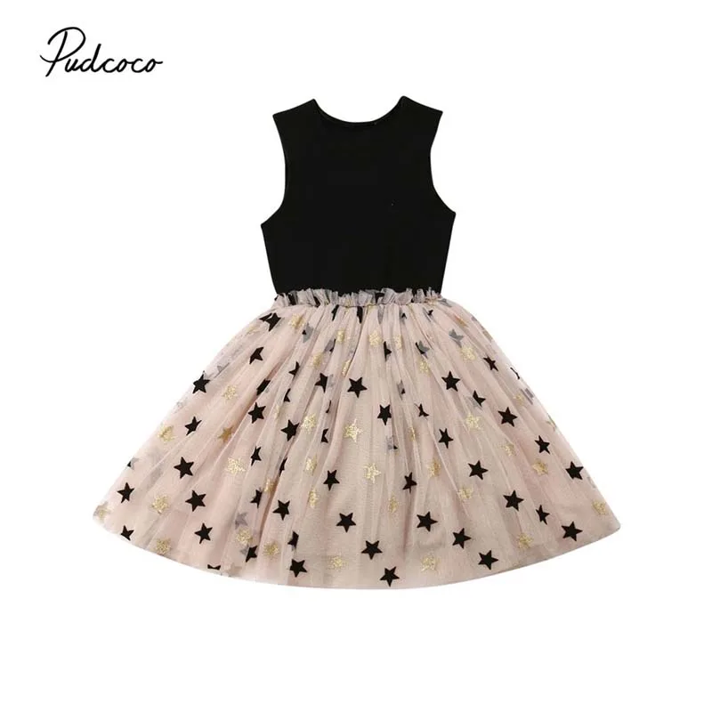 Модель 2019 года, Детская летняя одежда, модное платье для официальной вечеринки для маленьких девочек, шифоновое платье-пачка без рукавов со звездами и тюлем, свадебное платье принцессы