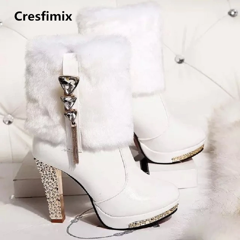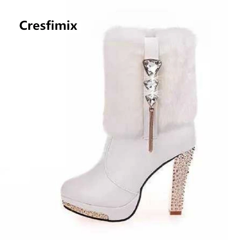 Для женщин прелестные модные туфли белого цвета; теплые зимние сапоги; женская Повседневная Удобная хлопковая куртка ботинки на меху для женщин высокое качество; сапоги на высоком каблуке; Botas G2658