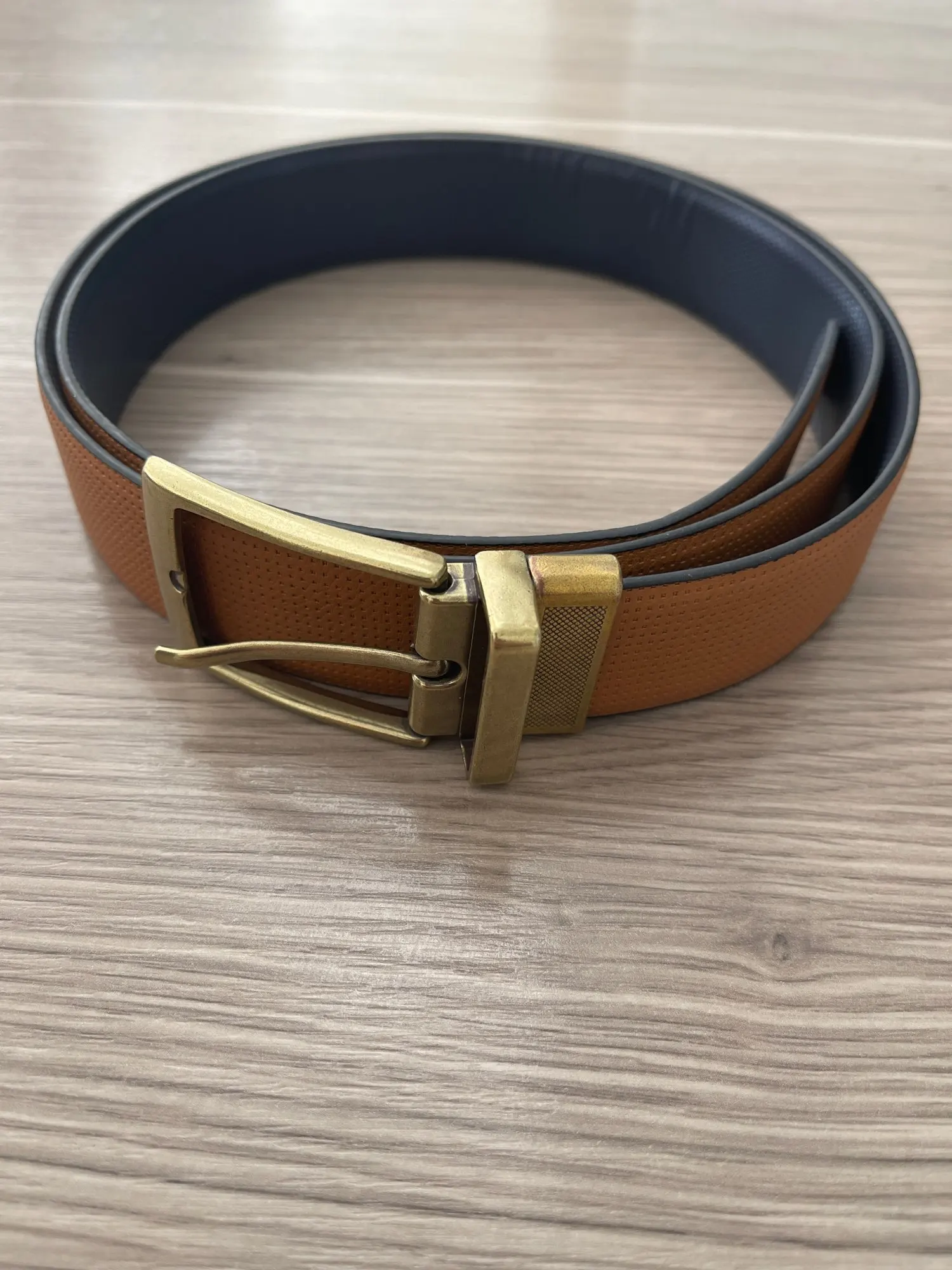 Кожаный ремень-два слоя кожаного материала из цинкового сплава для обеспечения комфорта ремня. Вы можете закончить любой образ в желто-коричневом/темно-синем (черном/коричневом) с помощью всего лишь изюминки античного золотаПряжкой, поэтому вы получаете 2 кожаных ремня в практичном 1 ремне.