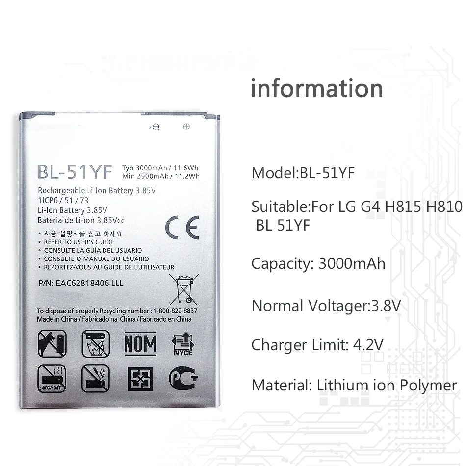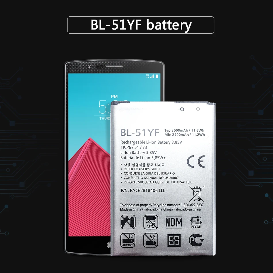 Сменный аккумулятор 3000 мАч BL-51YF для LG G4 H815 H810 VS999 F500 F500S F500K F500L H81 H818 H819 BL 51YF