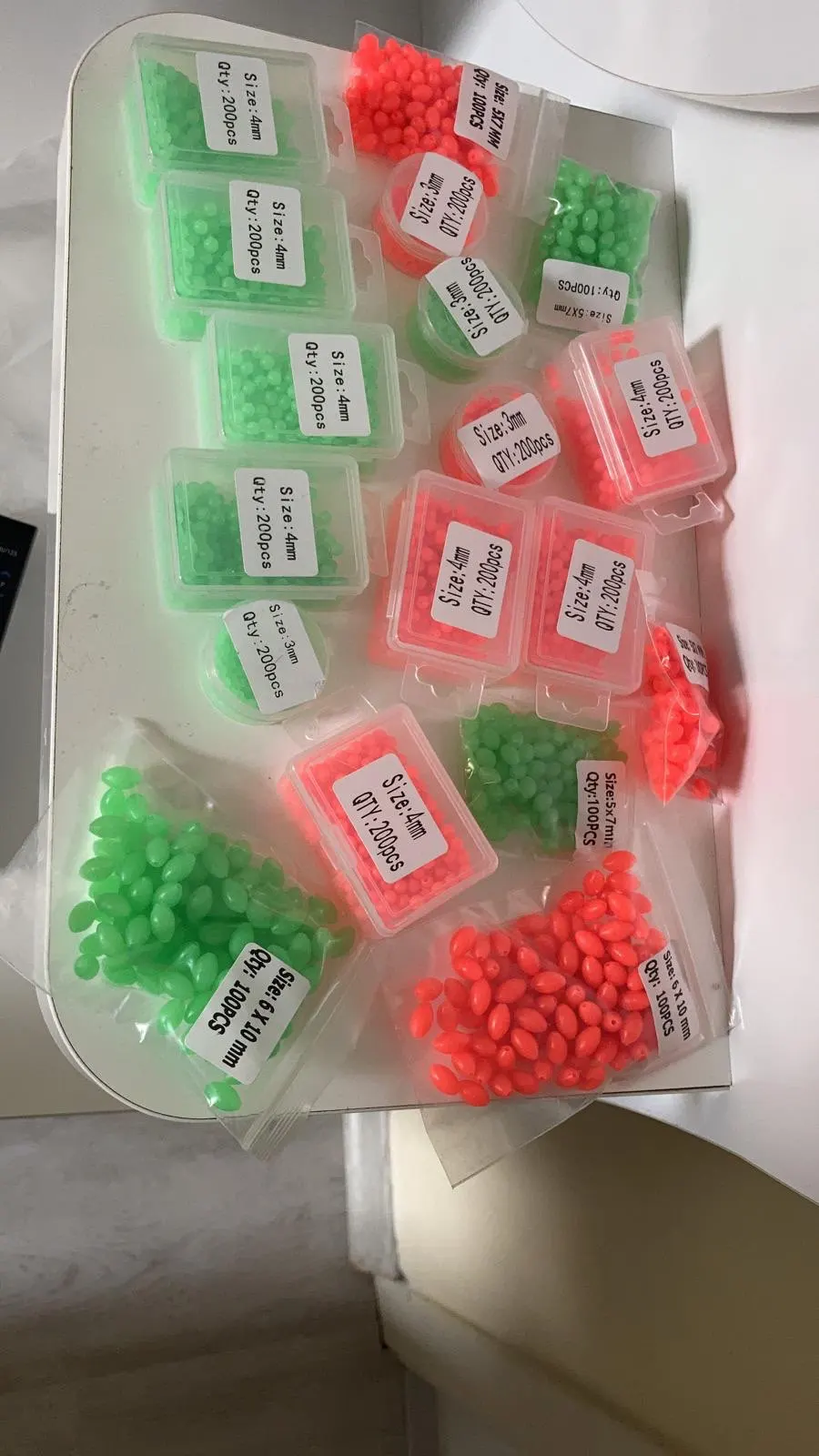 Красные светятся хуже, чем зеленые от другого продавца. С размером не угадал и заказал мелковатые для крючков вибов, но они подойдут для крючков блесен и балансиров. Бусинки уже выложил у себя в блоге Жизнь одного рыбака, кому интересно заходите.
