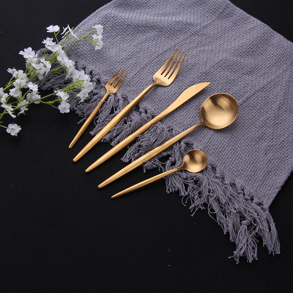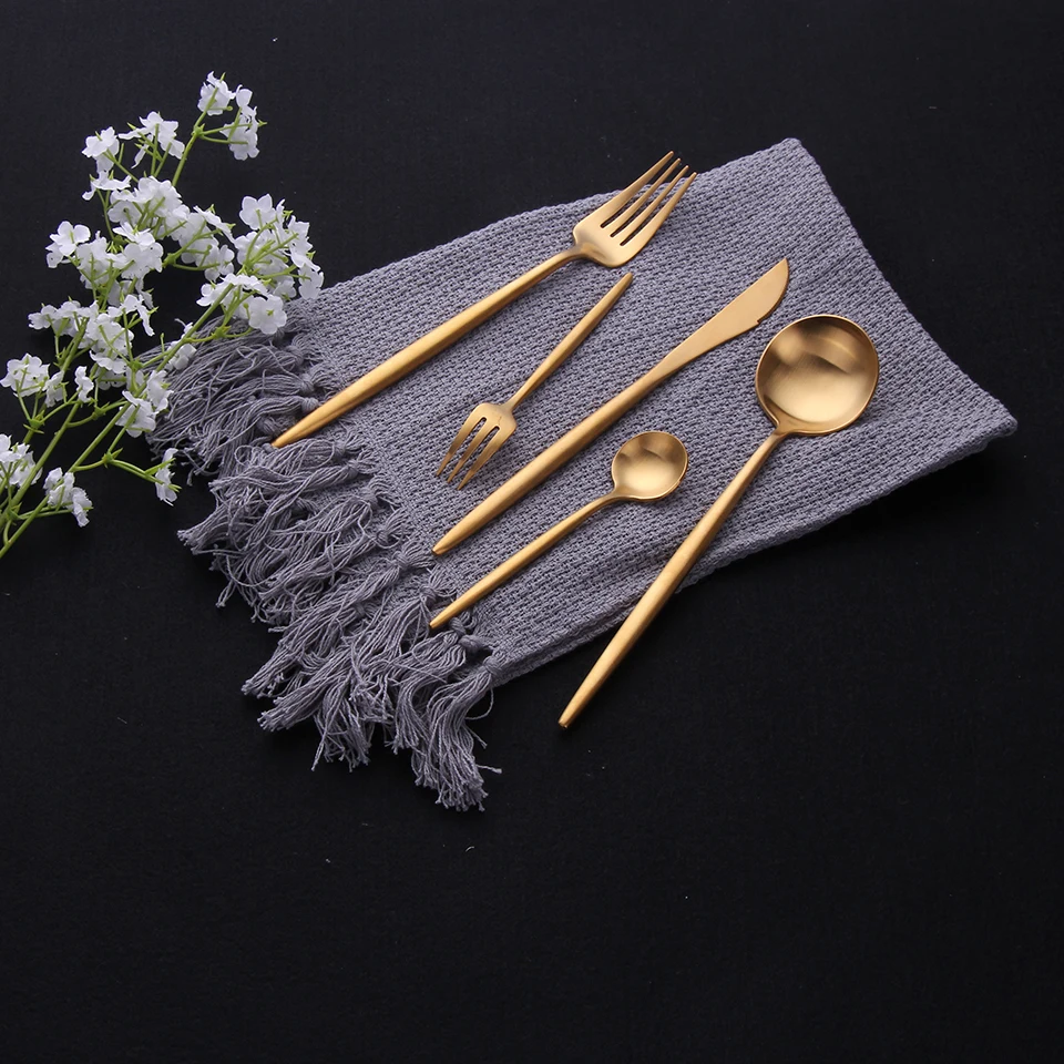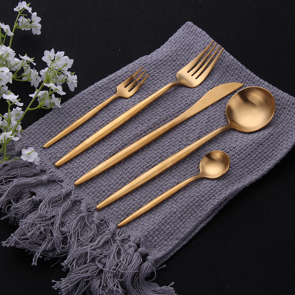 Набор столовых приборов из матового золота, комплект круглой посуды...