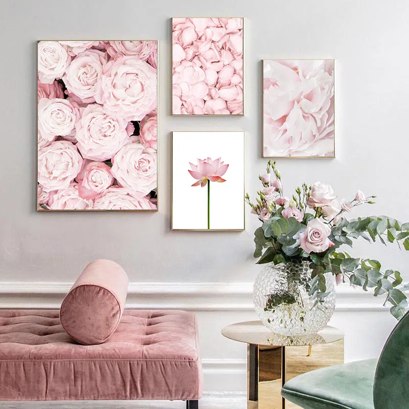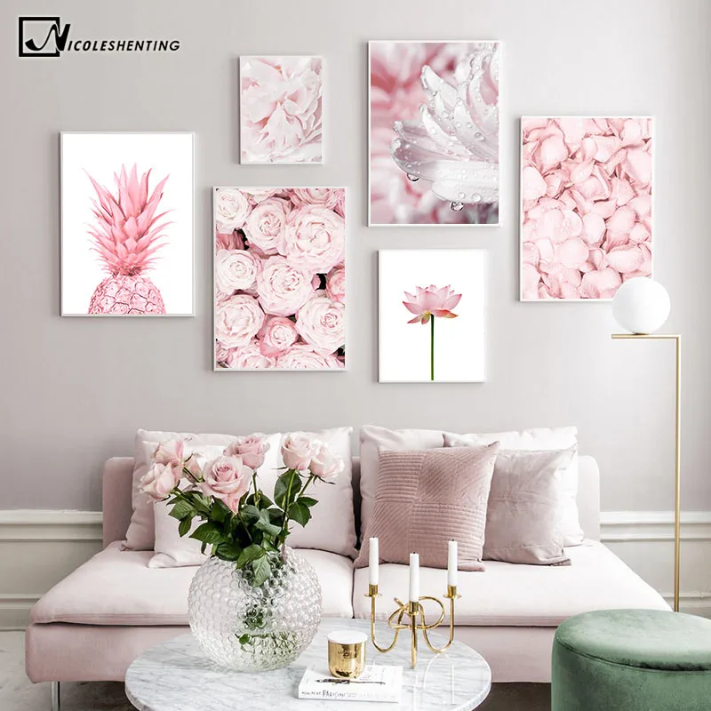 Розовый ананас роза цветок лотоса настенный плакат скандинавский ботанический цветочный принт скандинавский Холст Картина современное искусство картина