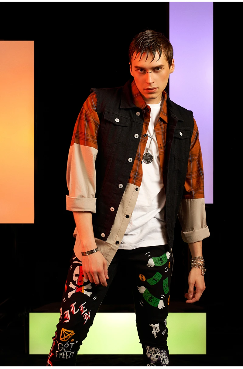 Мужской джинсовый жилет Sokotoo, черный облегающий джинсовый жилет с бахромой, безрукавка на бретелях