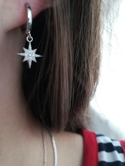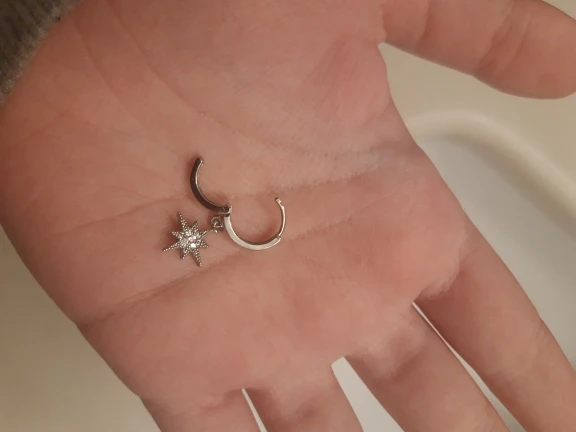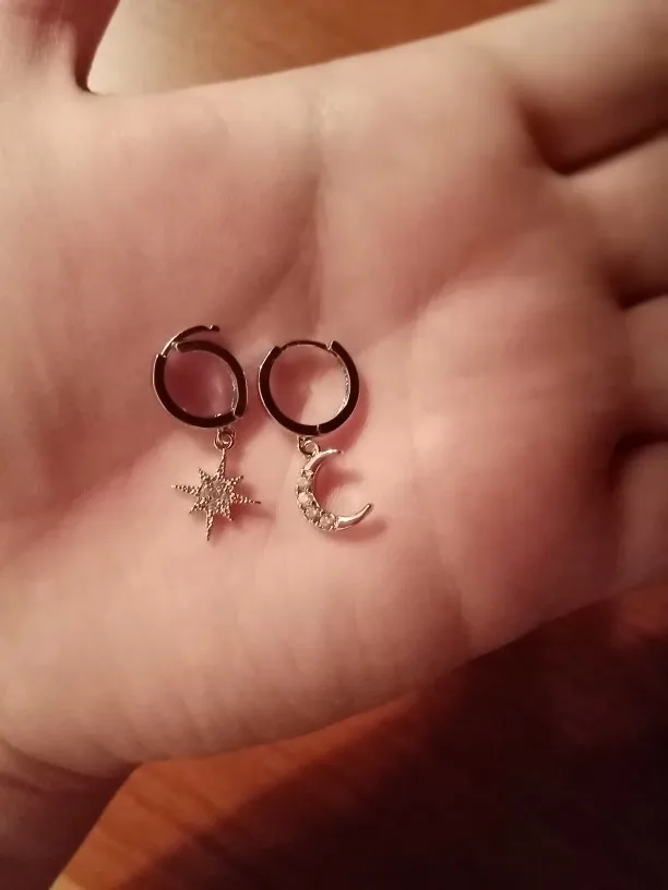 Они очень милые и красивые по цене! Я носил их несколько дней и помыл с ними, и у меня не было аллергии, и цвет не изменился. Они немного больше, чем я думал, и иногда запутываются в волосах, но это происходит только из-за стиля серег. Застежка немного деликатная, но Ive спала с ними, и они еще не выпадали. Я бы порекомендовал их!