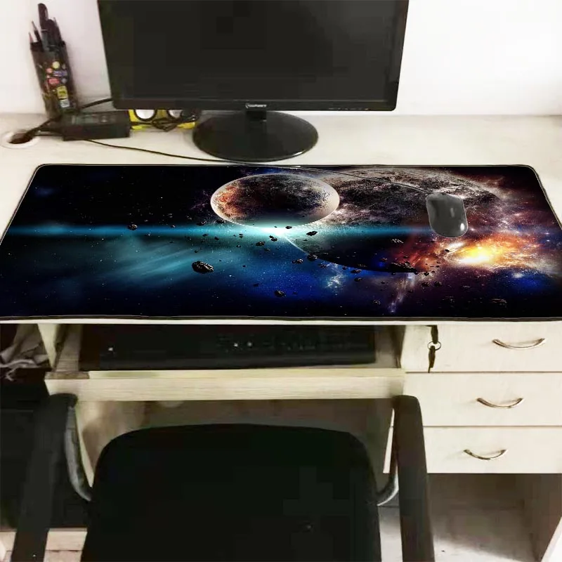 Большой синий коврик для мыши Mairuige Moon Space, игровой водонепроницаемый коврик, противоскользящий, с фиксирующим краем