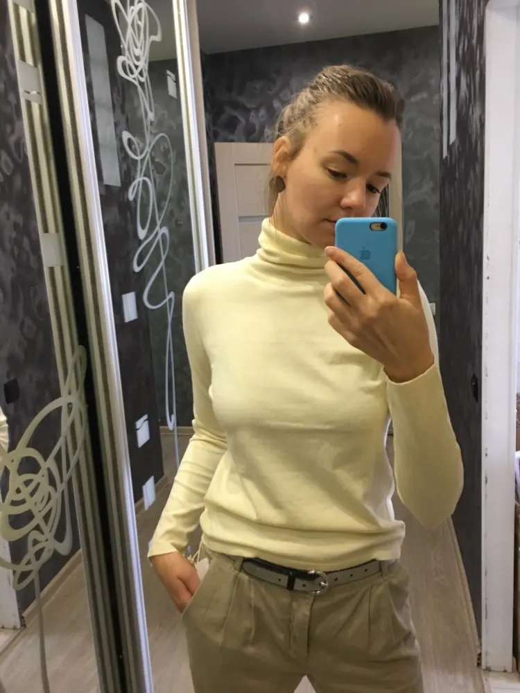 Водолазка очень понравилась! Красивый цвет, приятный материал, удобная в носке. На параметры 89-70-96 и рост 160 размер L подошел как раз, не в обтяжку и не оверсайз, по длине тоже хорошо.