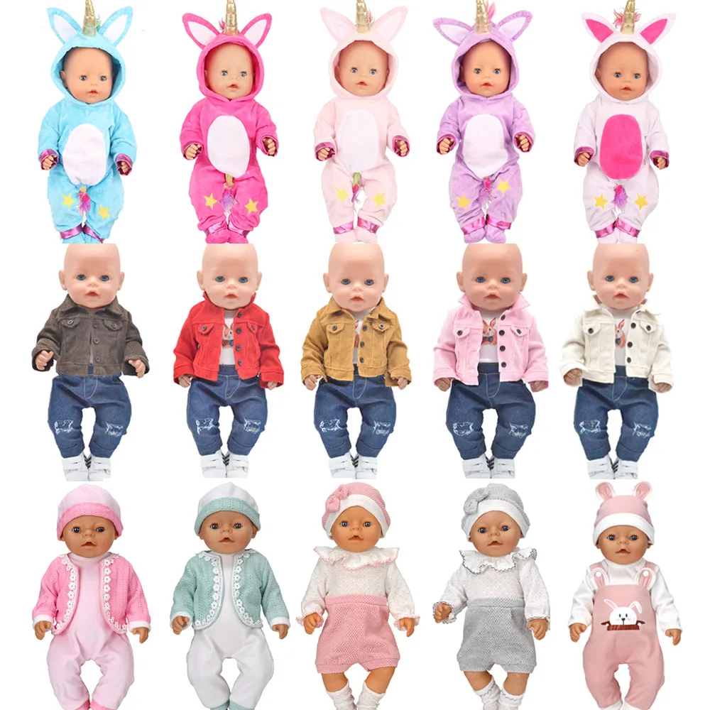 Одежда для кукол, подходит для игрушек 43 см, аксессуары для кукол, модные куртки, джинсы, плюшевые комбинезоны