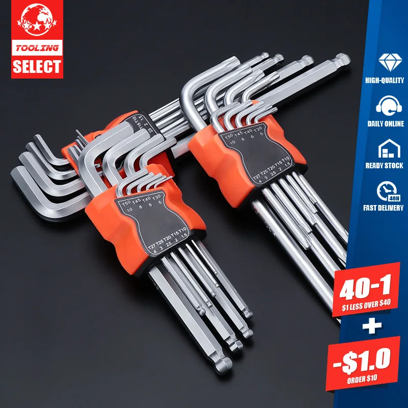 FGHGF 9 шт. L-образный двухсторонний ключ Набор шестигранных ключей шестигранный плоский шар звездообразный гаечный ключ набор ручных инструментов