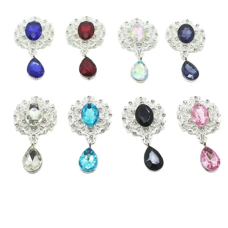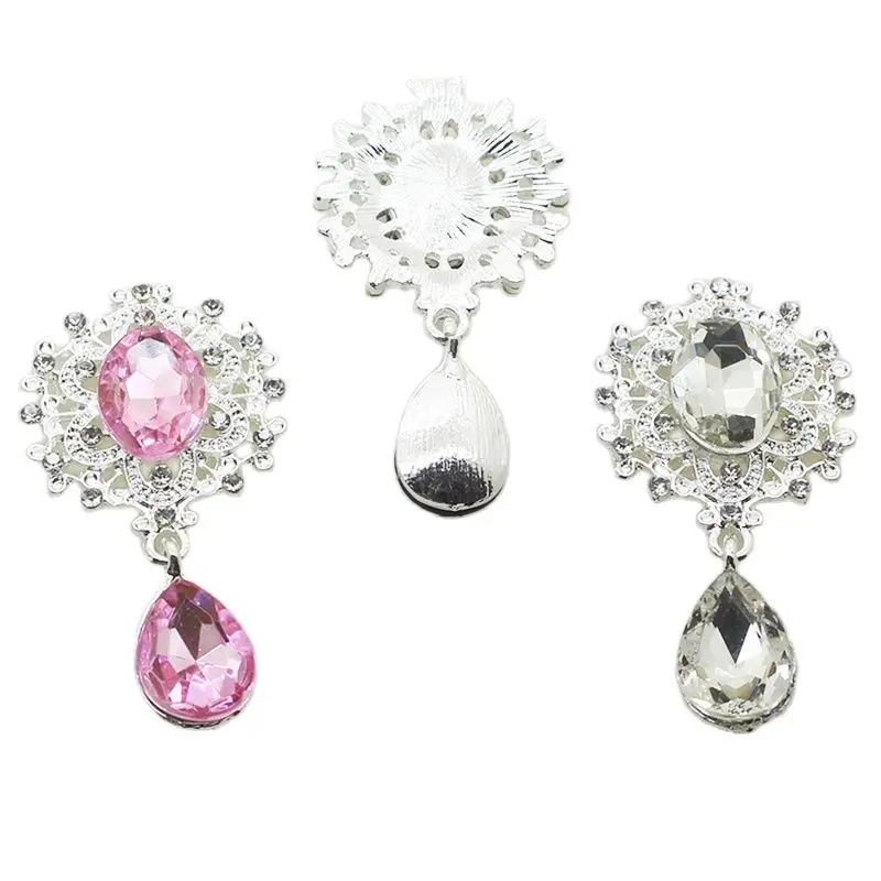 Брошь плоская со сверкающими кристаллами, 26 х46 мм, 5 шт.компл.