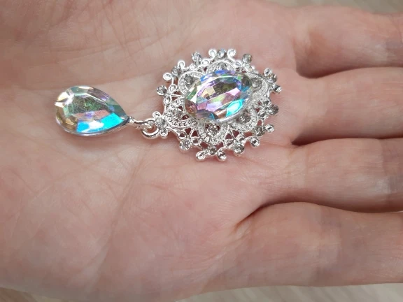 брошь полностью соответствует описанию. очень красивая!! на солнце красиво переливаются камни. но , будьте внимательны , она маленькая. я для сравнения сделала фото на фоне большой броши. посылка шла чуть менее месяца. рекомендую и товар и продавца !
