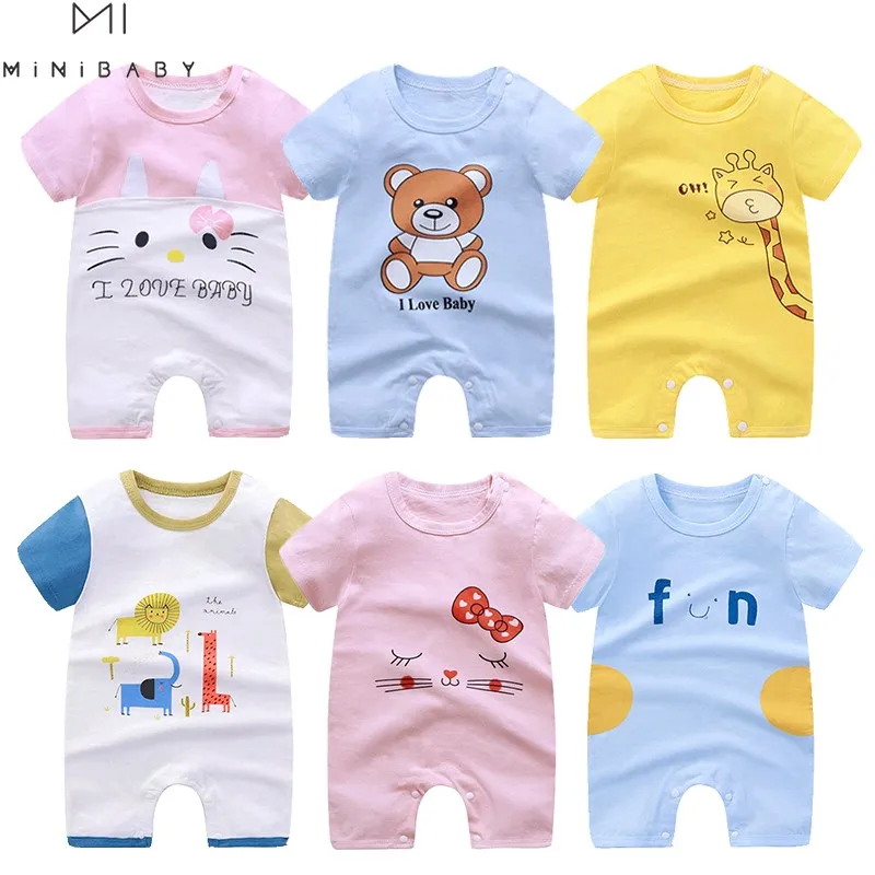 Комбинезон для новорожденных из чистого хлопка, детская одежда, Летний комбинезон с коротким рукавом для маленьких мальчиков и девочек, одежда для дома