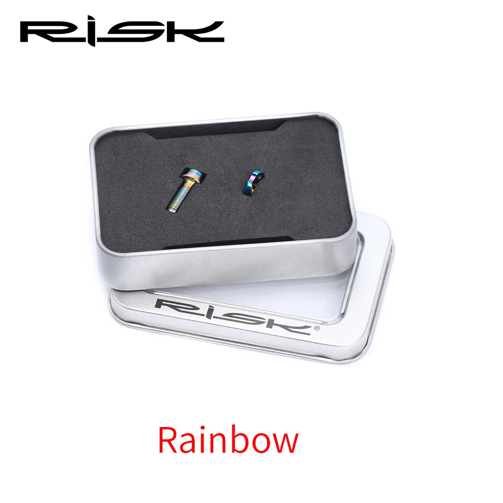 Risk дорожный велосипед передний переключатель крепежный винт шайба комплект M5 * 16 полый дизайн Superlight TC4 крепежные болты изогнутая прокладкаБренд: RISKПродукт: дорожный велосипед передний переключатель TC4 титановый сплав фиксированные болты и шайбаМатериал: титановый сплав TC4Цвет: Золотой Черный РадужныйУпаковка: 1 комплект * велосипед фиксированные болты