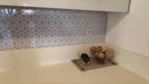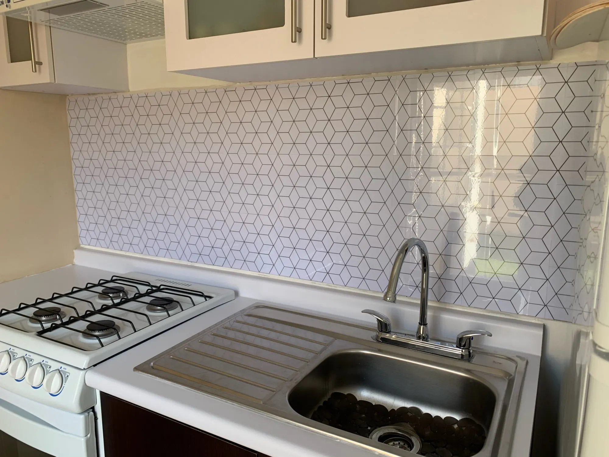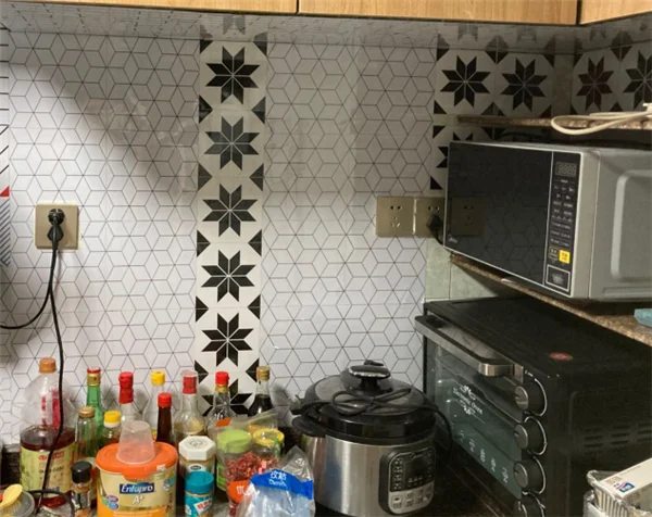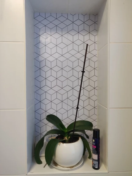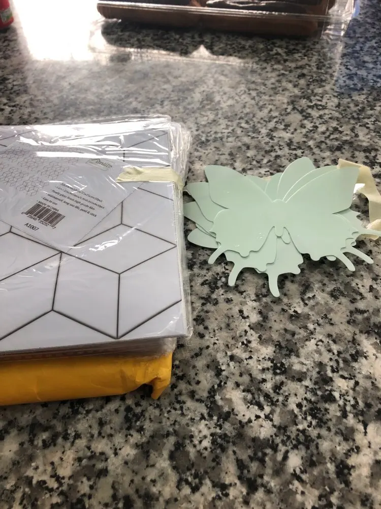 Happy with this little freshen up! I stuck these right over the old ceramic tile that I didn’t like. I wanted something that was easy & didn’t require a hammer and shards of tile...this did the trick!