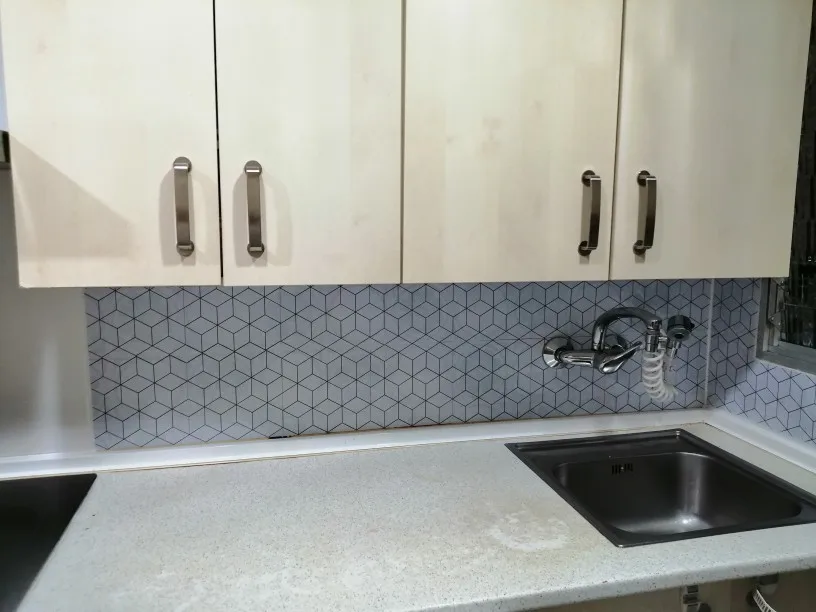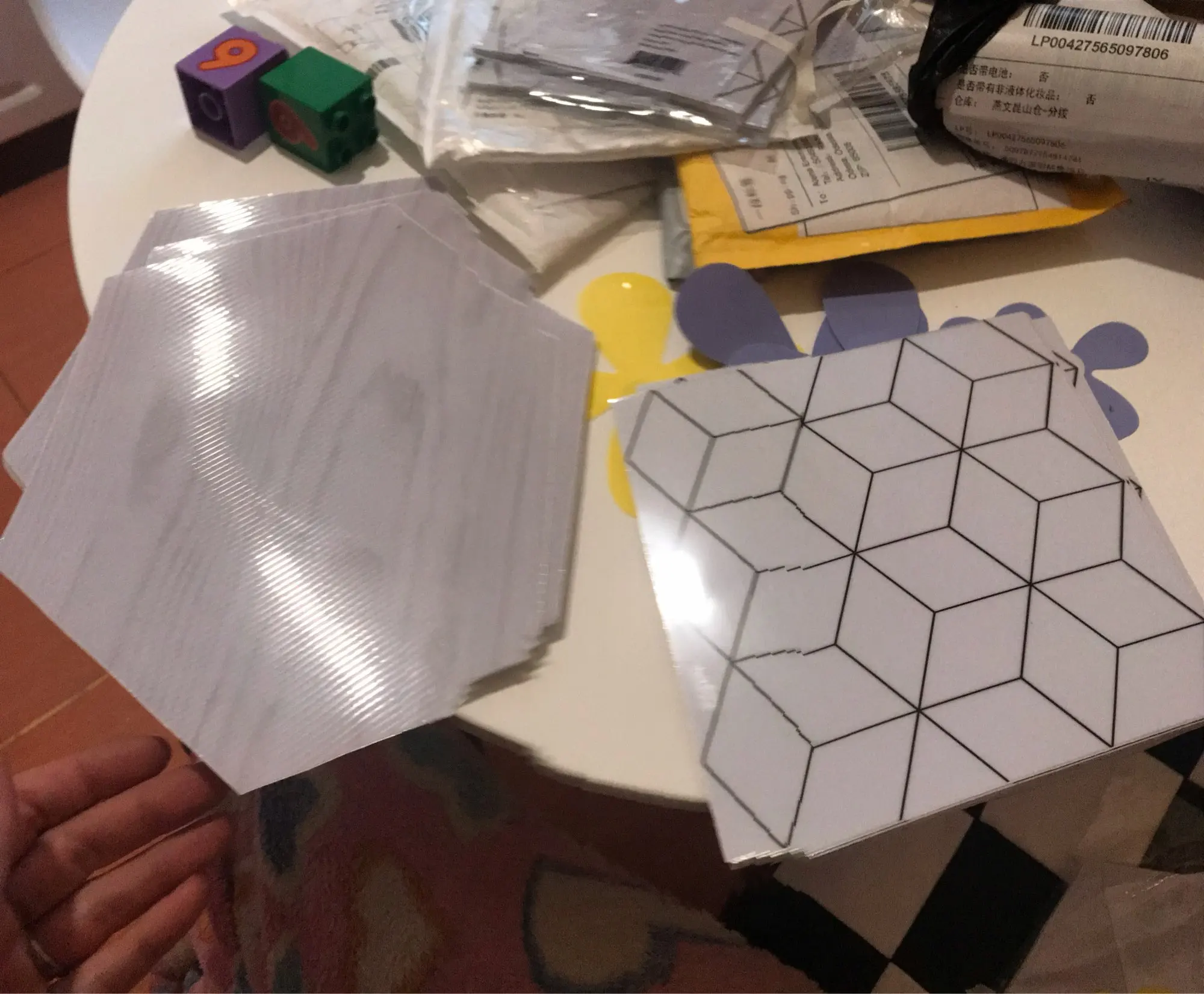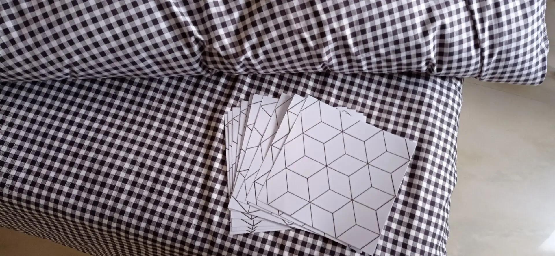 Очень хорошо покрывает страшные цветные плитки! Легко крепится, легко отклеивается, как только вы получите наклейку и закрепите. Вы можете отклеить плитку, если вы допустили ошибку, которая поможет. Я хотел бы, чтобы они были немного меньше просвечиваются, однако, если вы действительно не будете выглядеть близко, вы не сможете увидеть узор под слишком большим количеством... Очень доволен тем, как он получился, меньше хлопот и расходов, чем картина