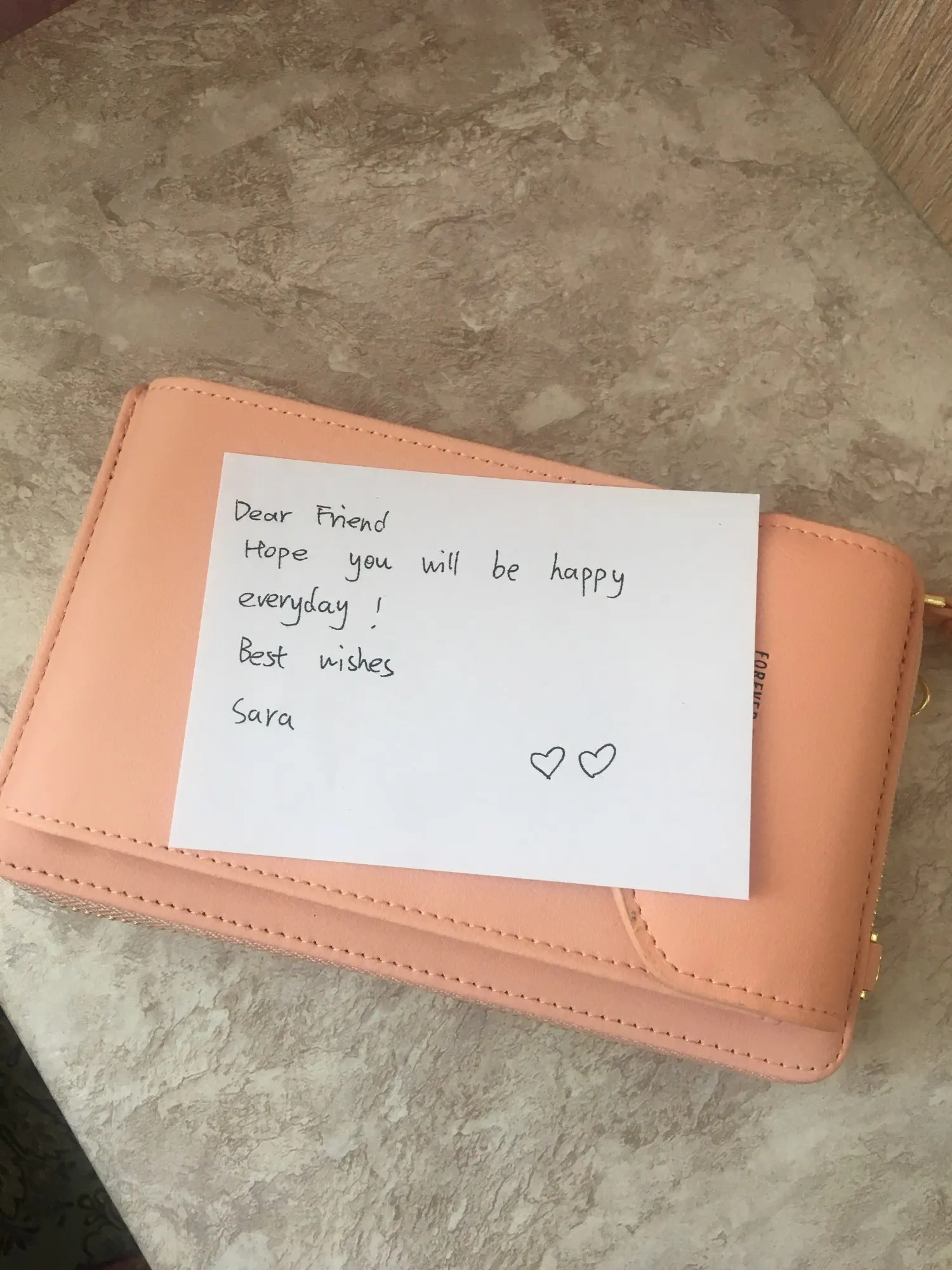 Красивая компактная сумочка!Описание точное!Товар понравился! Вложили записку на английском языке