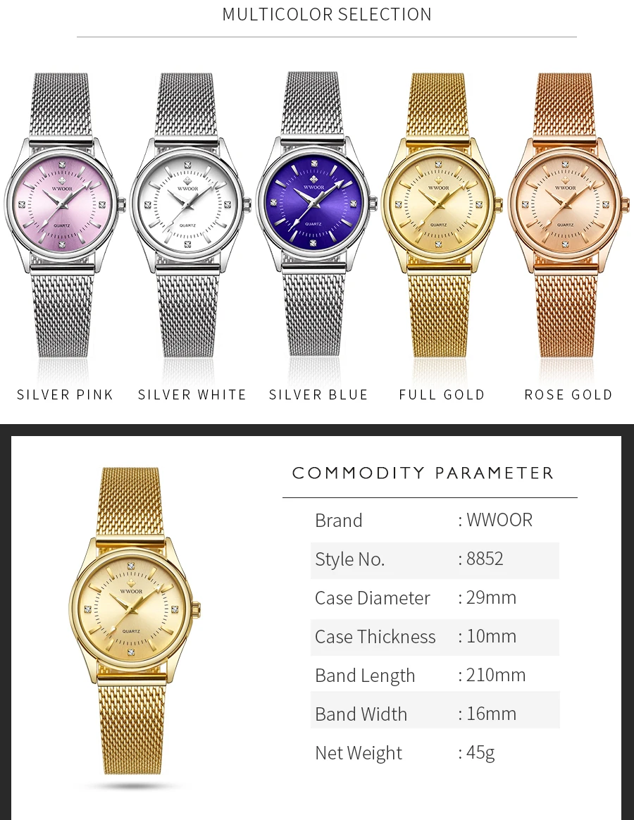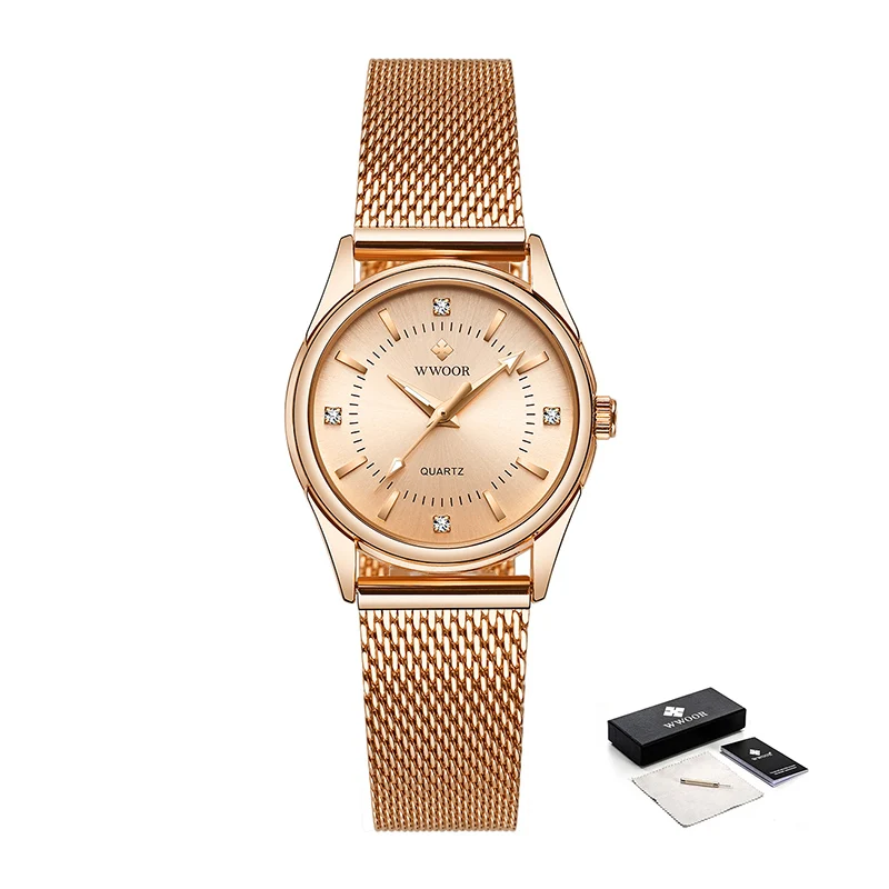 WWOOR 2021 роскошные женские часы с бриллиантами, женские, розовое золото, маленький браслет, наручные часы, подарки для женщин, кварцевые часы, женские часы