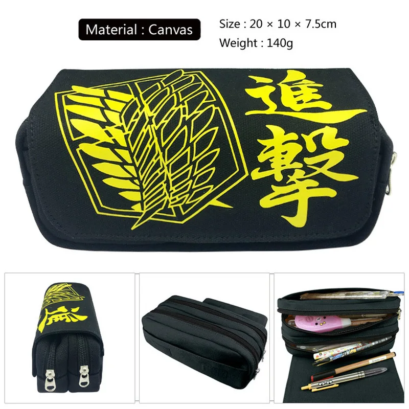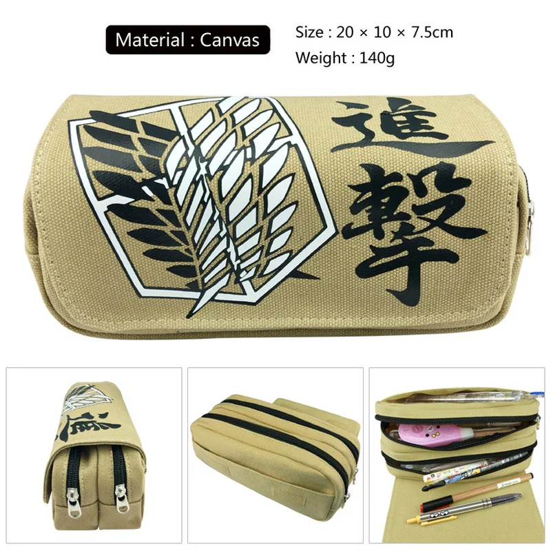 Холщовый чехол для карандашей, с аниме атака на Титанов, на молнии