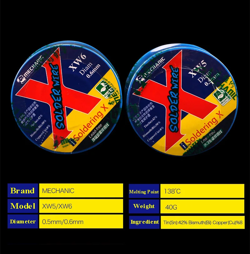 Механическая Бессвинцовая паяльная проволока 0,50,6 мм 40 г низкая температура 138 градусов Сварка Оловянная проволока для iPhone XXSXRXs MAX