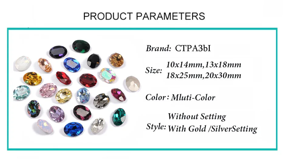 Овальные пришивные камни CTPA3bI выполнены из бессвинцового расширенного хрусталя.
