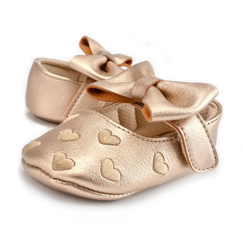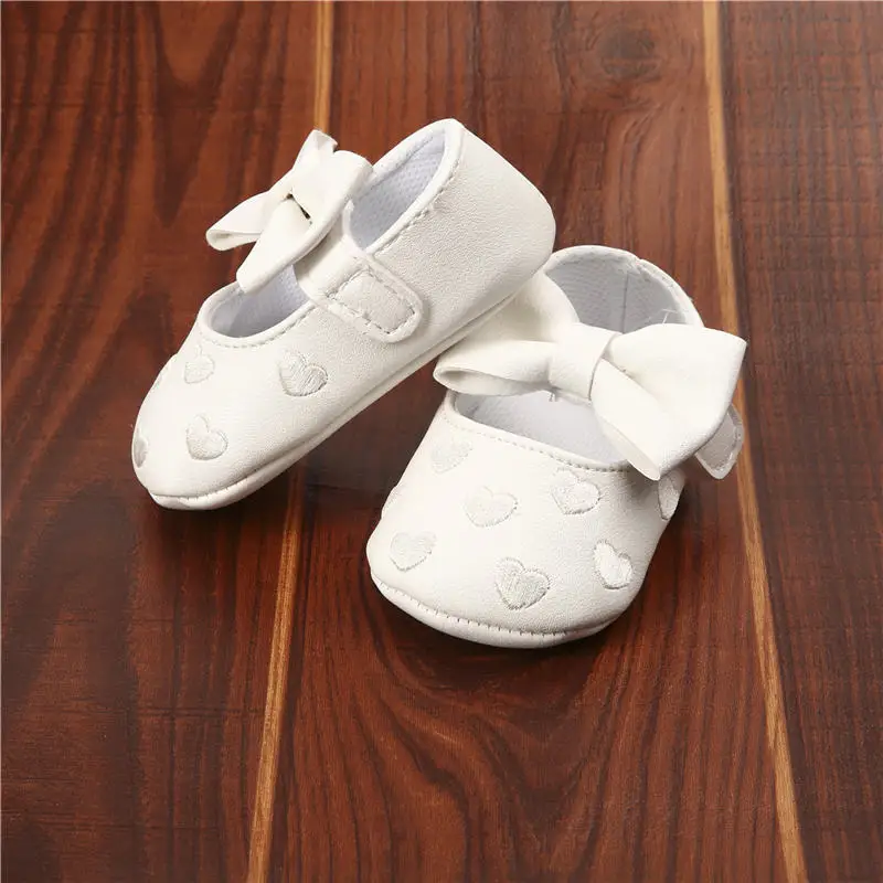 Ботинки детские для новорожденных девочек, полиуретан, обувь для первых шагов, в форме сердца, мягкая подошва, с бантом